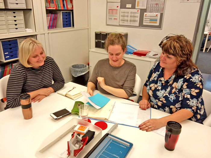 DID Institut в Берлине предлагает своим студентам учебный курс, направленный на повышение уровня языковой компетенции и расширение спектра страноведческих знаний и представлений. При анализе опыта зарубежных коллег я пришла к идее создания информационных боксов (далее - инфобоксов) для использования на уроках. К примеру, в инфобоксе "Берлин в вывесках и картинках" собраны фотографии самого разного плана: это и официальные обозначения на административных зданиях, уличные указатели, бегущая строка в поезде, информационное табло на вокзале, тексты объявлений на столбах, запретная табличка на стройплощадке. Одним словом, различные сюжеты информационного поля для жителей и гостей Берлина. Цель подбора такой, на первый взгляд, пёстрой палитры вывесок и картинок - дать детям возможность выйти за рамки учебного кабинета и ощутить, будто они сами гуляют по улицам Берлина, видят всё собственными глазами и распознают в вывесках очевидные вещи. При этом решаются конкретные учебные задачи: ознакомление с новой лексикой, с реалиями города, особенностями жизни берлинцев и всех, кто там пребывает. На основе собранного мной в Германии материала разработан также инфобокс "Дрезден - жемчужина Саксонии", в процессе подготовки "Сикстинская мадонна" и другие шедевры Дрезденской галереи", "Лейпциг: история и современность", "Германия: рождественская сказка", "Берлинский зоопарк", "Столичные зарисовки". Обучая немецкому языку, руководствуюсь принципом триединства: открытие - развитие - единство. Открываем новое, развиваем зону знаний и возможностей, сотрудничаем в едином направлении и получаем конечный продукт.