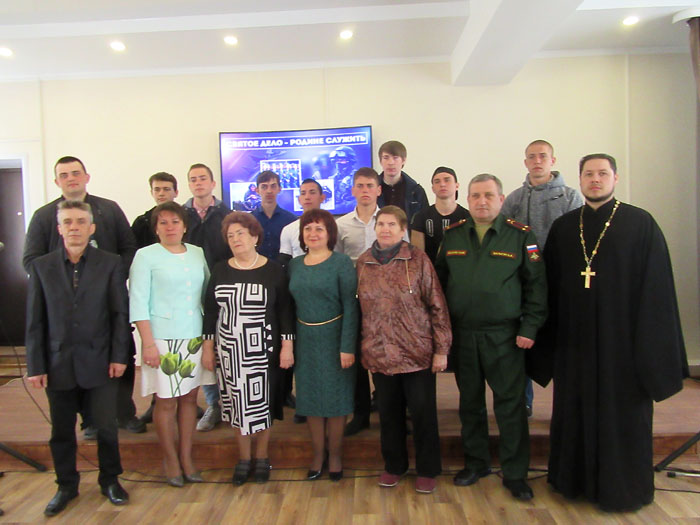 «Нет большей любви, чем положить душу за други своя» - с такими словами обратился к новобранцам настоятель церкви Михаила Архангела отец Сергий. Он рассказал о важности ратного служения, и о том, что сам Господь благословляет русское воинство на защиту своего Отечества. Победа всегда достается тем, кто силен не только физически, но и духовно. Благословляя ребят на службу, отец Сергий каждому призывнику вручил икону с образом Архангела Михаила, покровителя русского воинства, и молитвослов.
