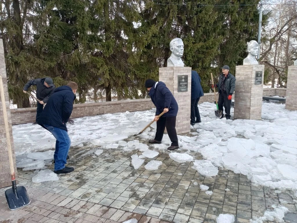 «Бюджетные учреждения в этот день занимались благоустройством закрепленных территорий. Мужчины администрации района, отдела образования и управления финансов благоустраивали Комсомольскую площадь и территорию памятника воинам, погибшим в годы Великой Отечественной войны - ворошили снег», - отметили в районной администрации.