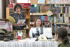 На мероприятии прозвучали песни в исполнении преподавателя ДШИ Ларисы Ларькиной и учащихся Миланы Потосян и Анны Богомоловой, которая также читала стихотворение. О том, как служили Родине наши земляки, как ковали победу, рассказали собравшимся внуки и дети солдат-победителей, библиотекари из Сурска, Канаевки и Нижней Елюзани.