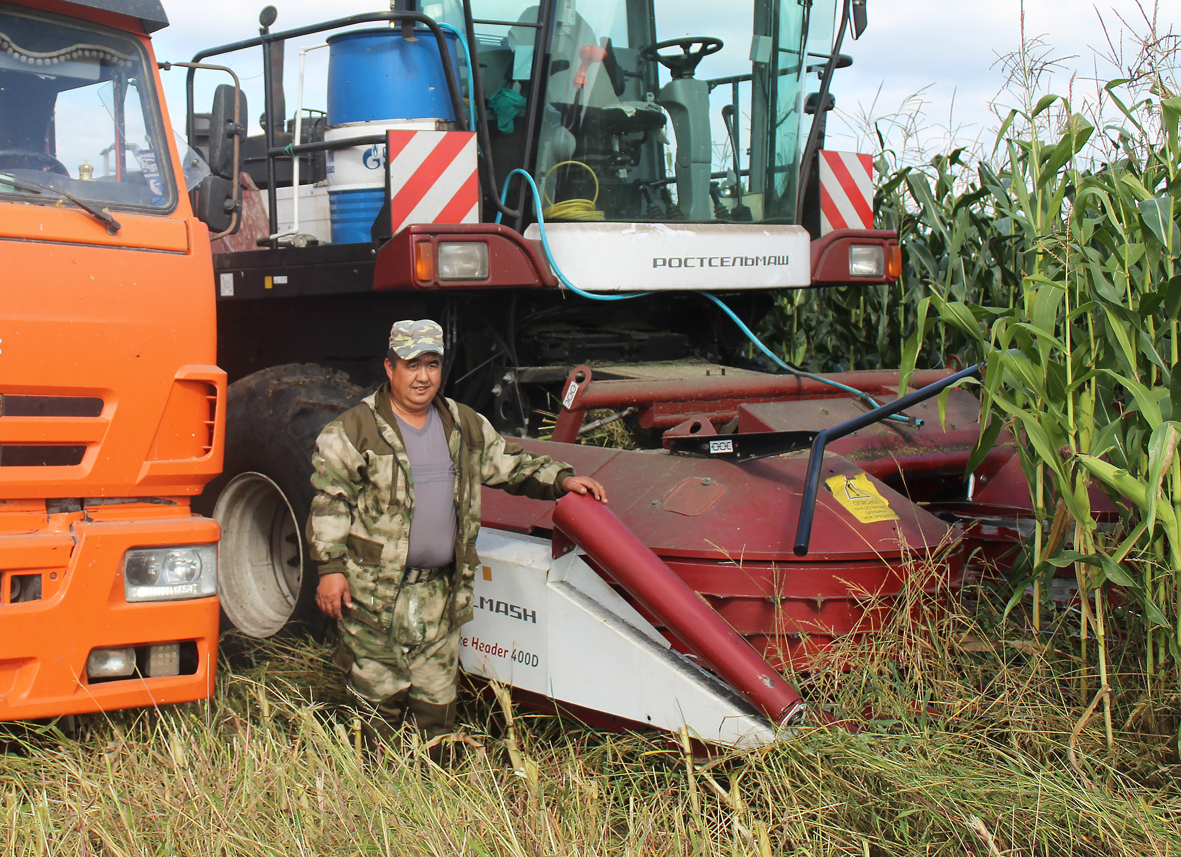 На косовице кукурузы работают два комбайна, пять КамАЗов задействованы на перевозке и на трамбовке на силосной яме - два «Кировца».