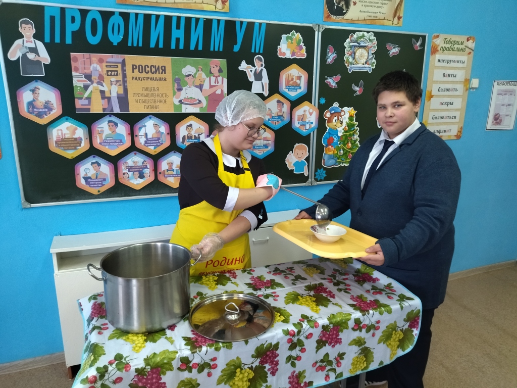 В школе села Большой Умыс состоялось тематическое занятие. Оно прошло в рамках федерального профориентационного курса «Россия - мои горизонты», который с начала 2025 года по инициативе Минпросвещения России вошел в федеральный проект «Профессионалитет» нацпроекта «Молодежь и дети», и было посвящено одному из ключевых секторов экономики - пищевой промышленности и сфере общественного питания.