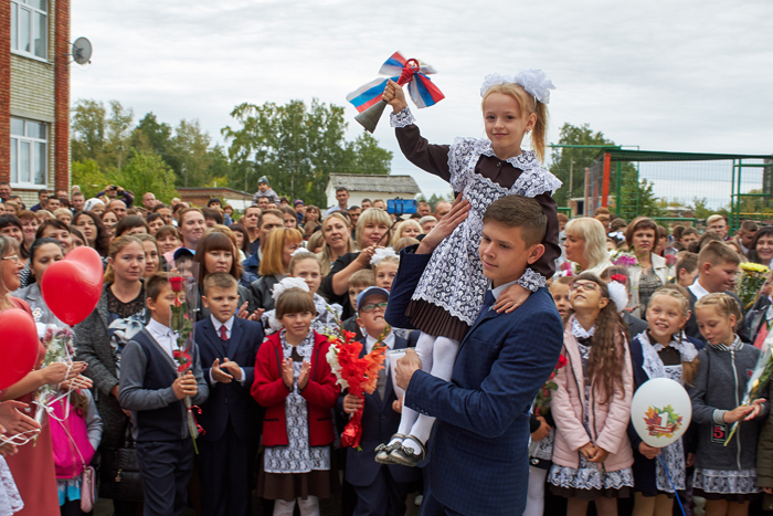 Были заранее размещены сайтах школ фотографии выпускников и видеоролики с их участием, соответствующим образом украсила окна образовательного учреждения.  Как всегда ровно в 9:00 начинается торжественная онлайн-линейка.