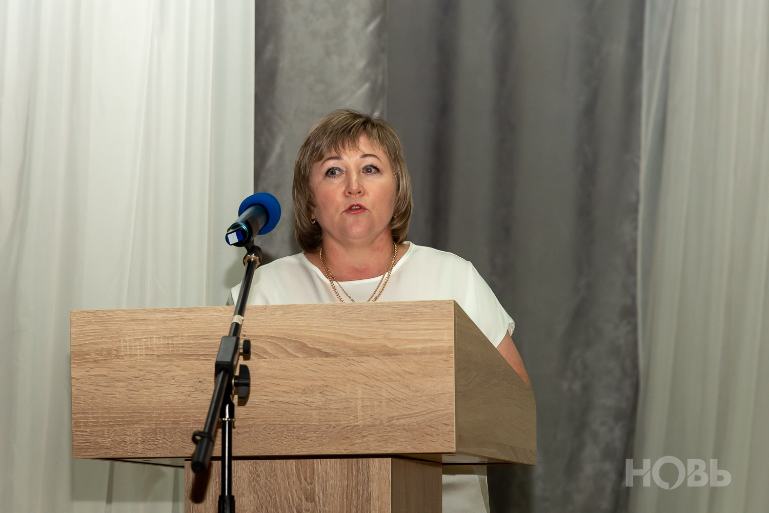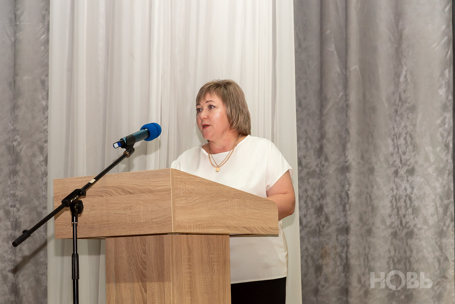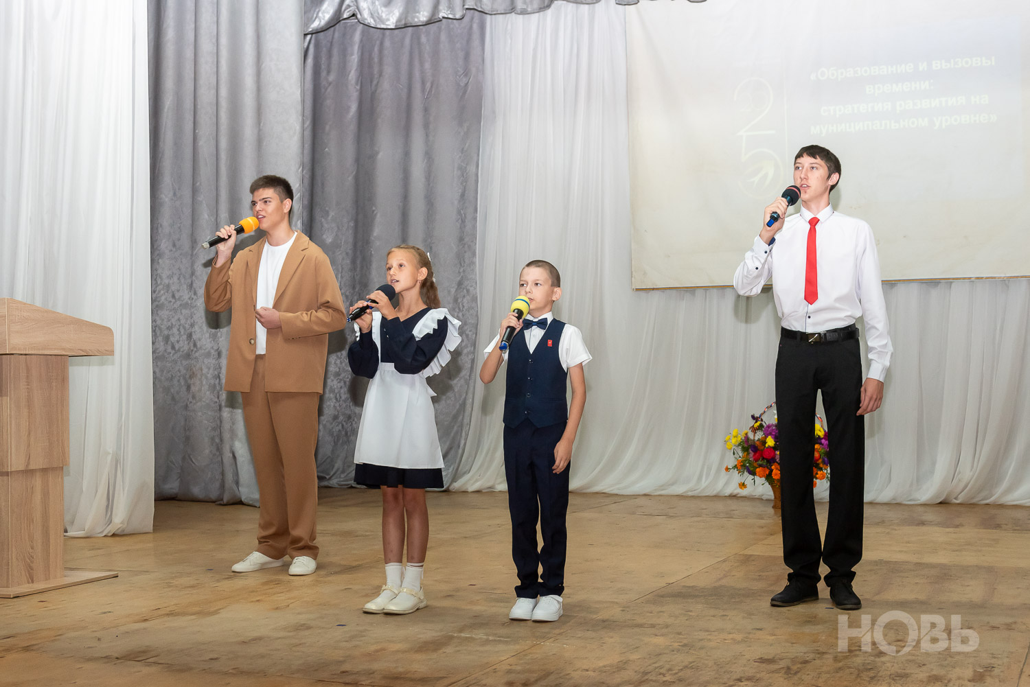 О работе в прошедшем учебном году доложила начальник отдела образования Наталья Безроднова. Она подчеркнула успехи школьников на олимпиадах и конкурсах, а также обозначила проблему нехватки педагогических кадров.