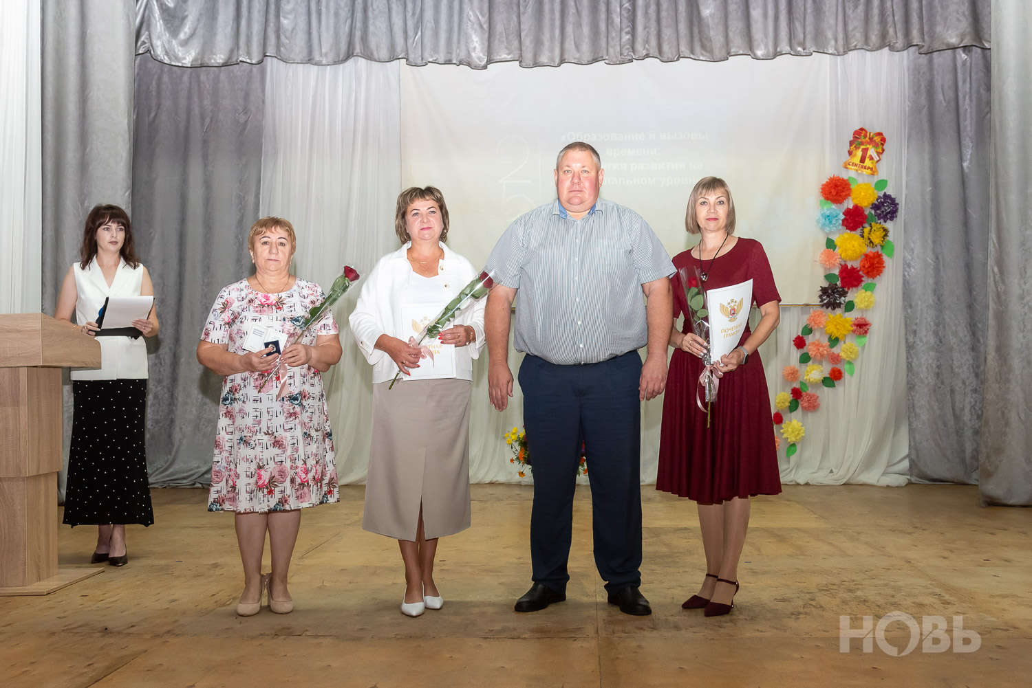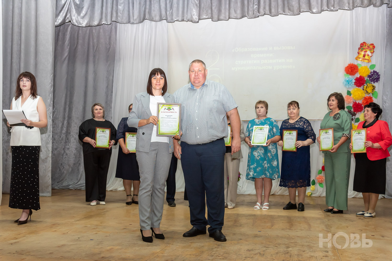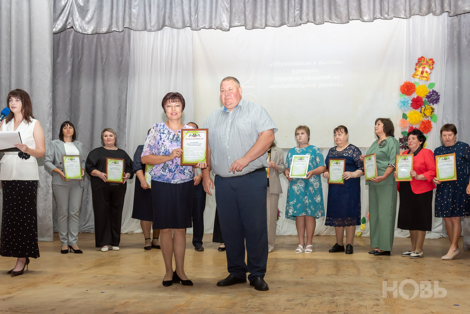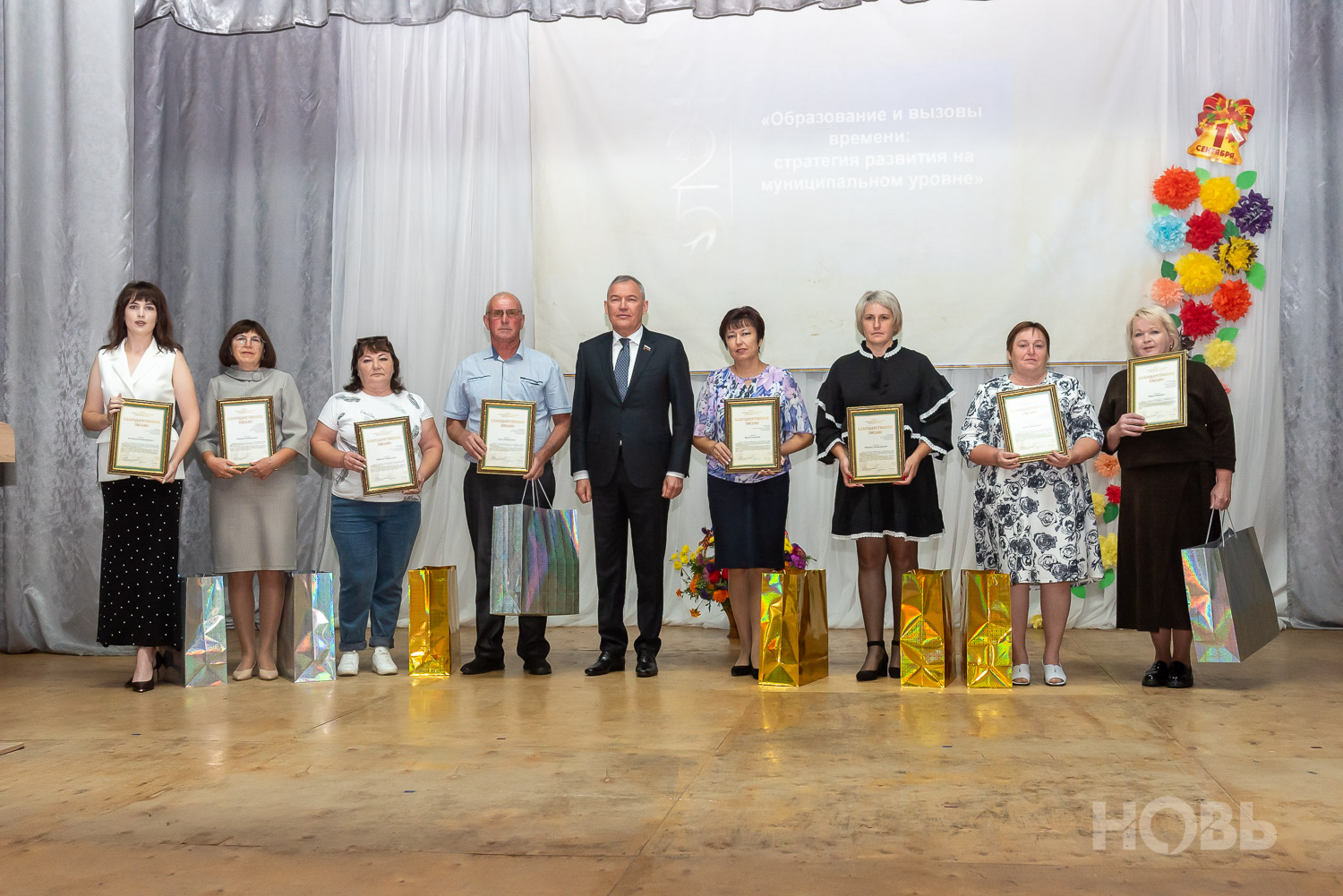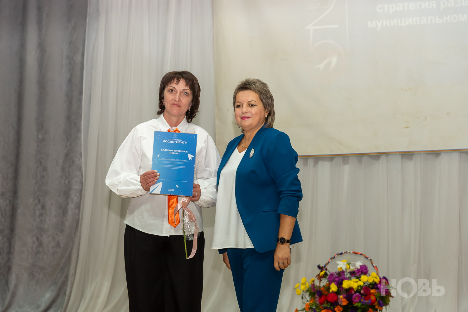С приветственным словом к учителям обратился глава района Дмитрий Мануковский. Он поздравил педагогов с началом учебного года, пожелал успехов и здоровья, а также вручил ряд наград: свидетельство о присвоении звания «Почётный работник сферы образования РФ» Валентине Маршовой, почётные грамоты и благодарности - заслуженным педагогам района.