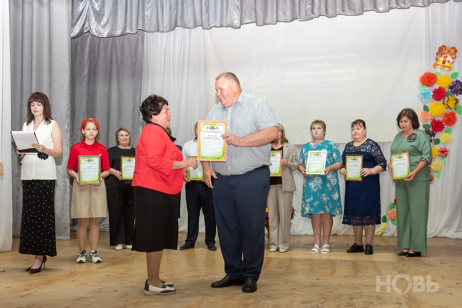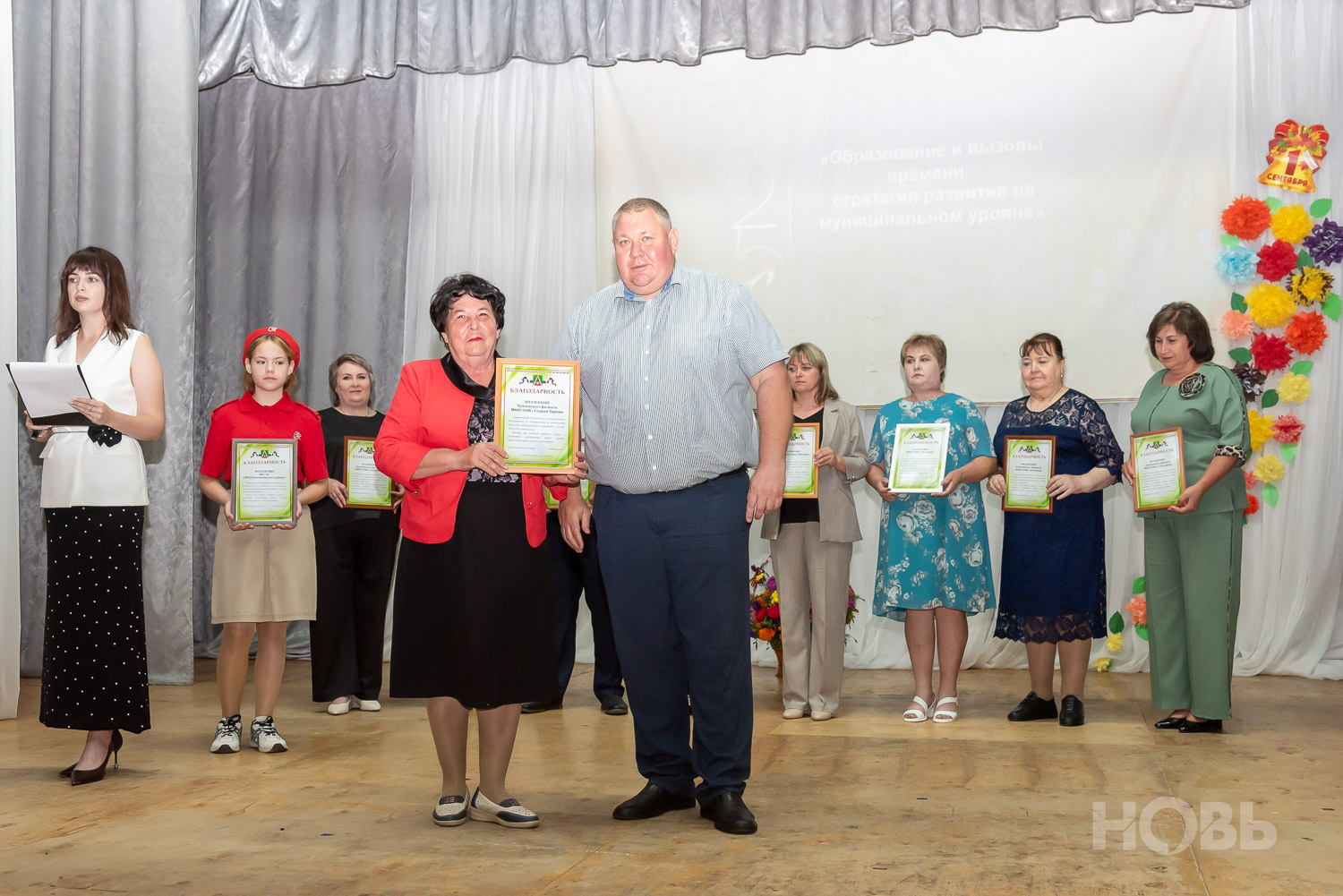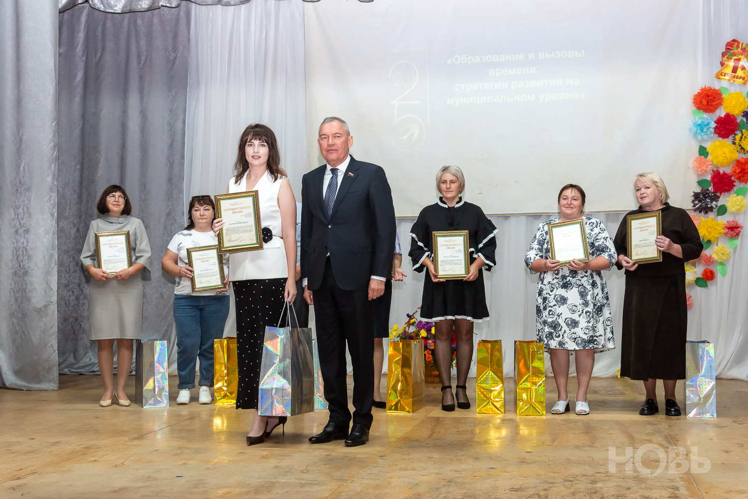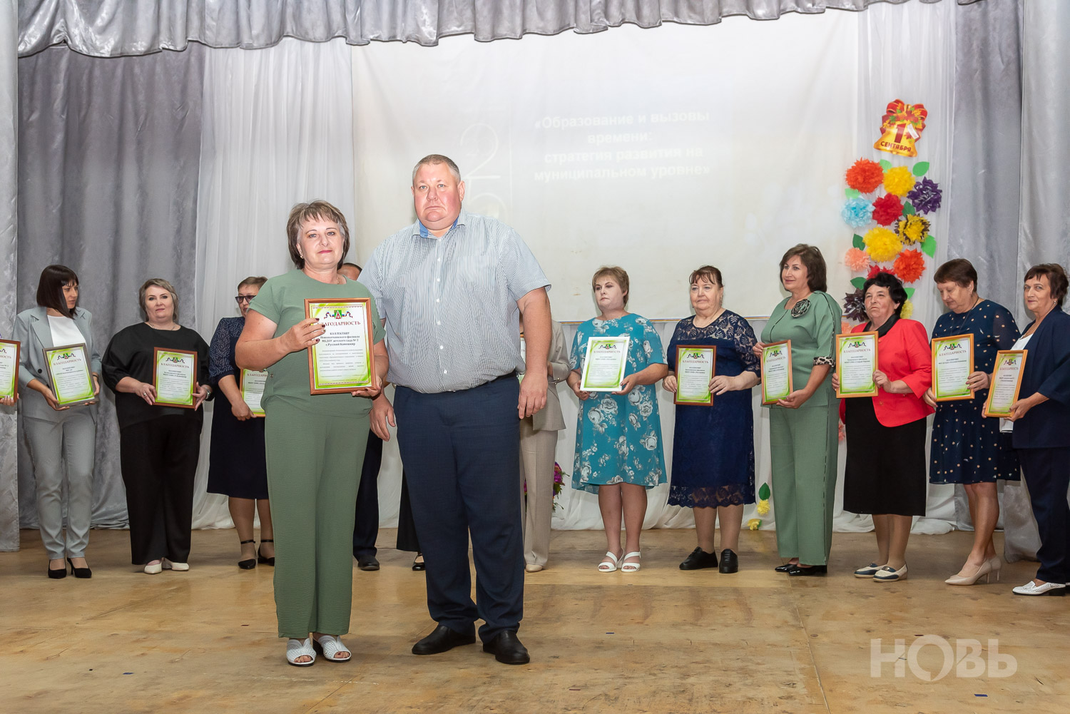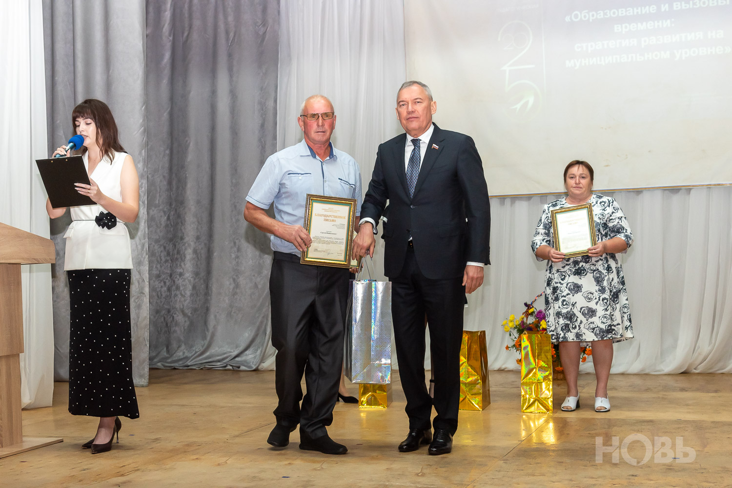С приветственным словом к учителям обратился глава района Дмитрий Мануковский. Он поздравил педагогов с началом учебного года, пожелал успехов и здоровья, а также вручил ряд наград: свидетельство о присвоении звания «Почётный работник сферы образования РФ» Валентине Маршовой, почётные грамоты и благодарности - заслуженным педагогам района.