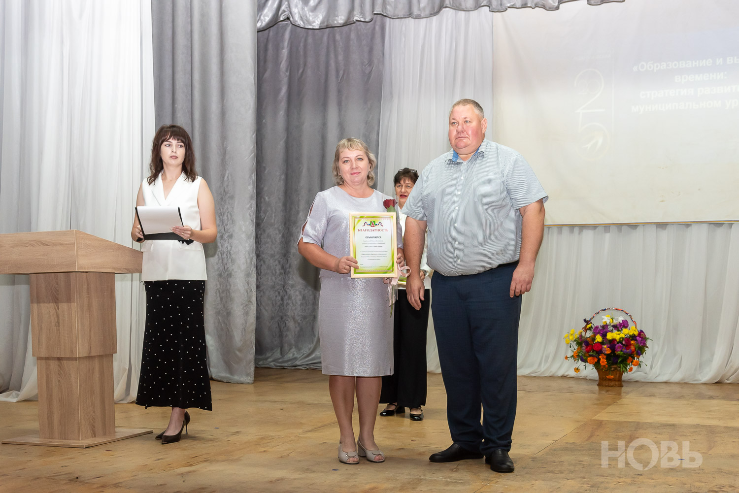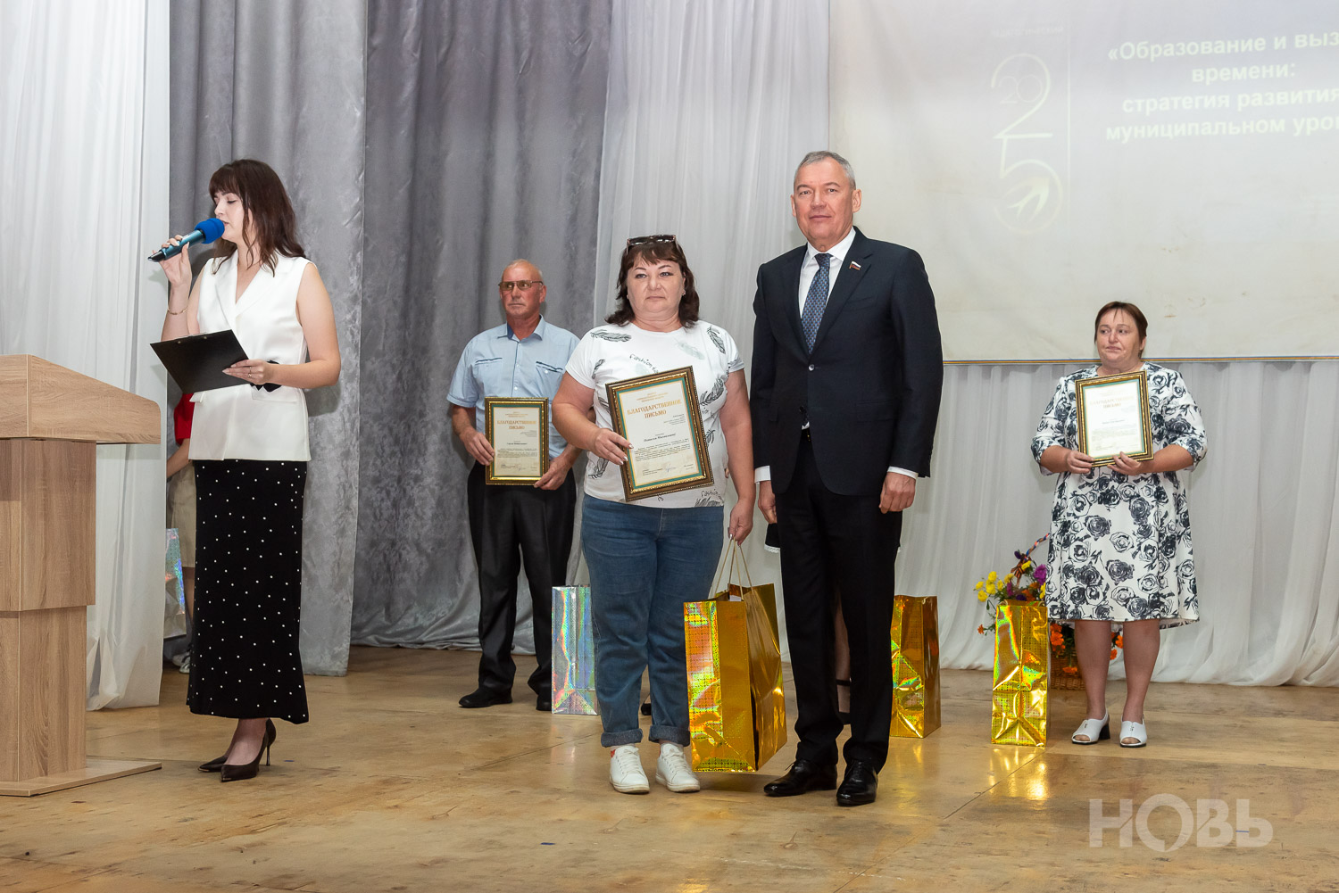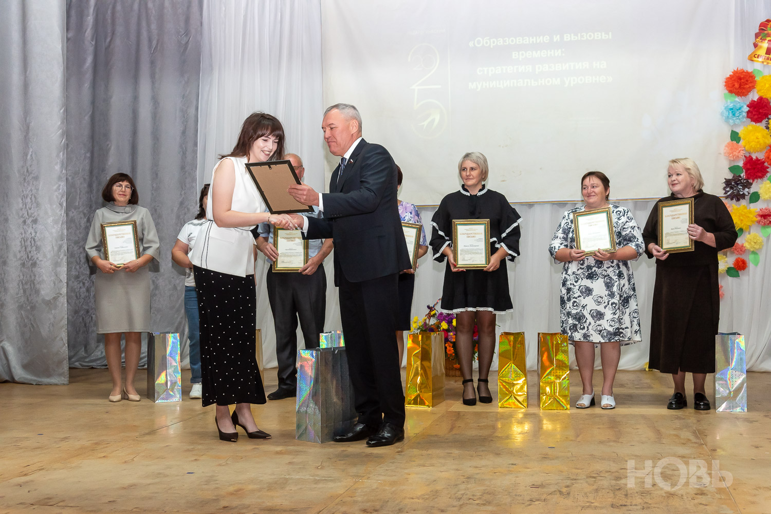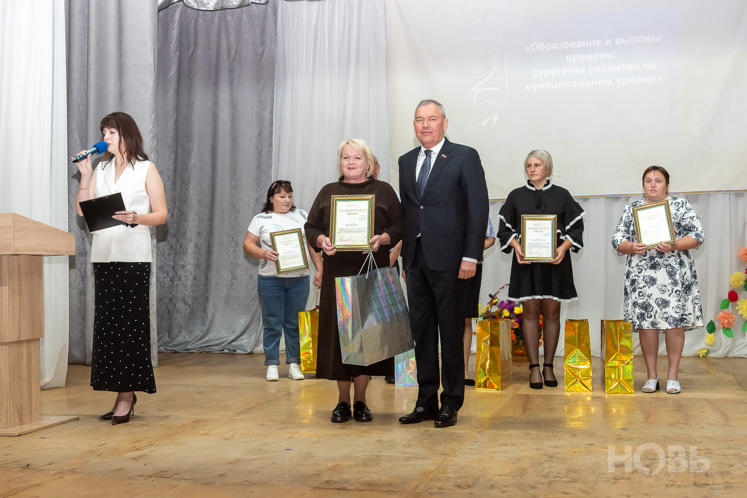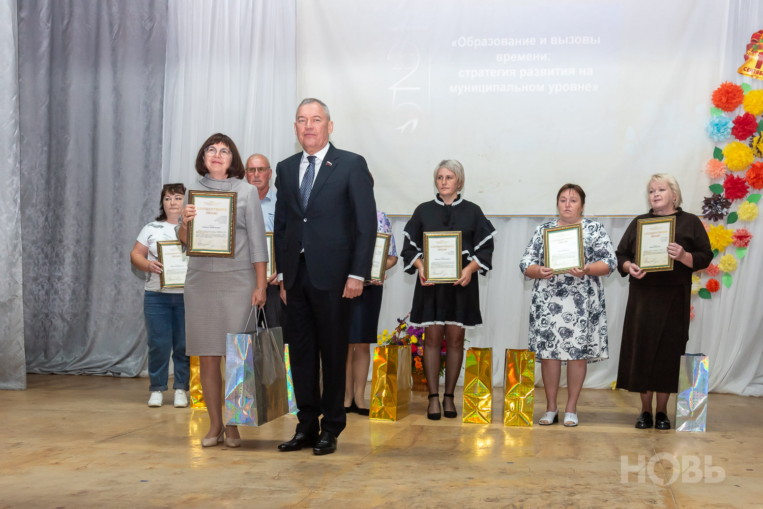 С приветственным словом к учителям обратился глава района Дмитрий Мануковский. Он поздравил педагогов с началом учебного года, пожелал успехов и здоровья, а также вручил ряд наград: свидетельство о присвоении звания «Почётный работник сферы образования РФ» Валентине Маршовой, почётные грамоты и благодарности - заслуженным педагогам района.