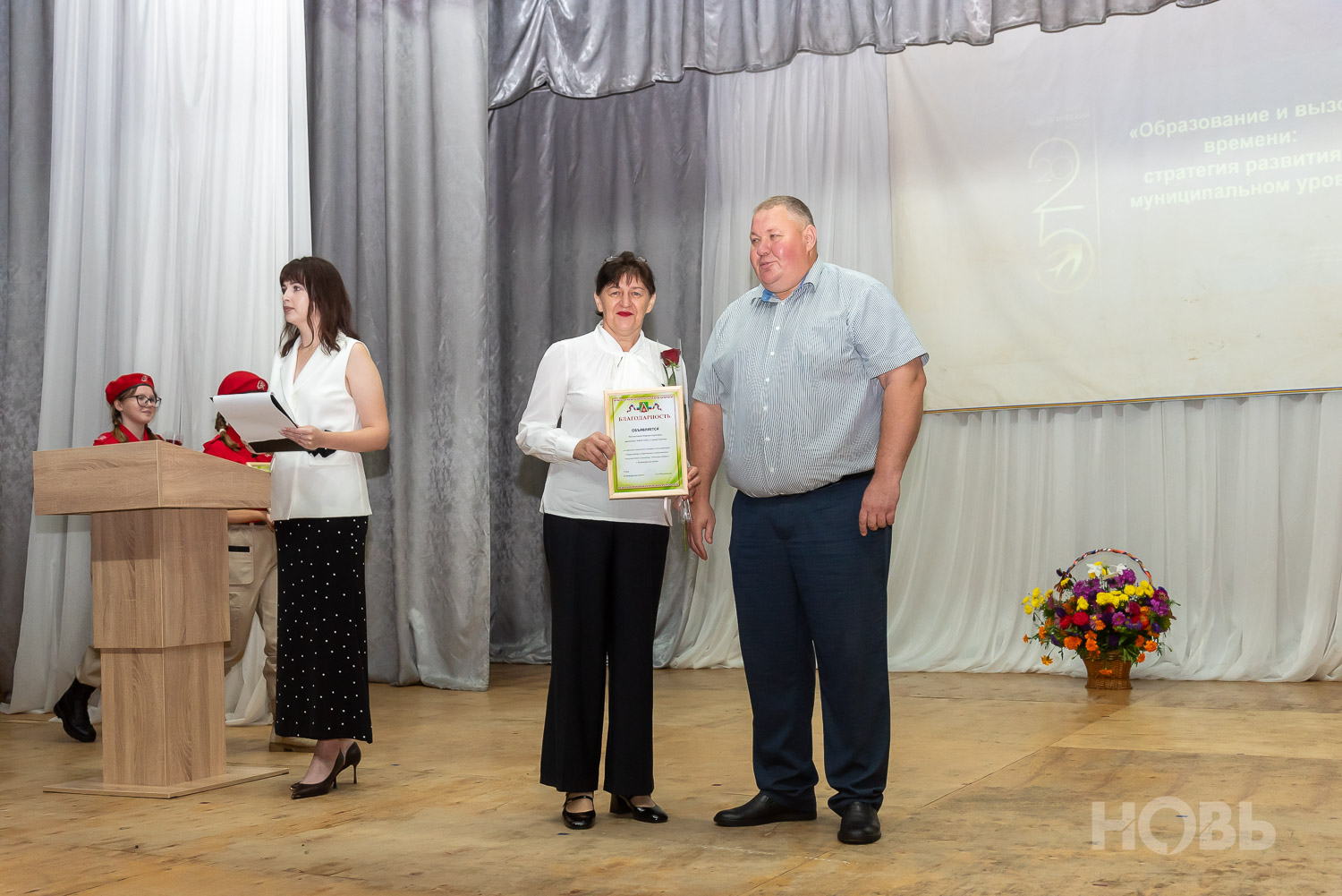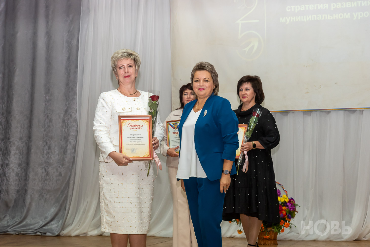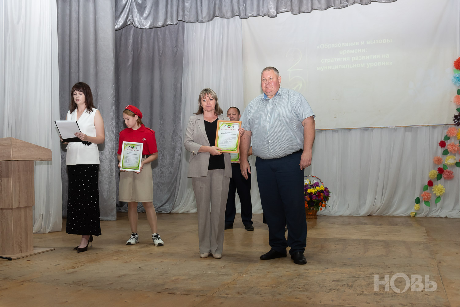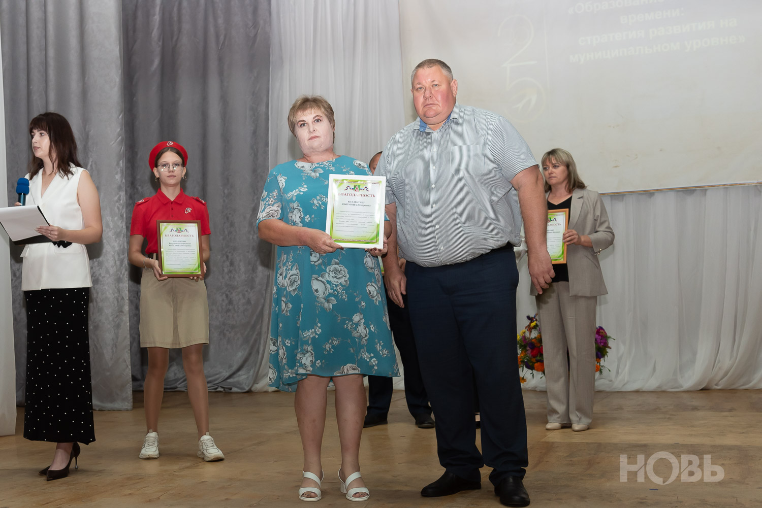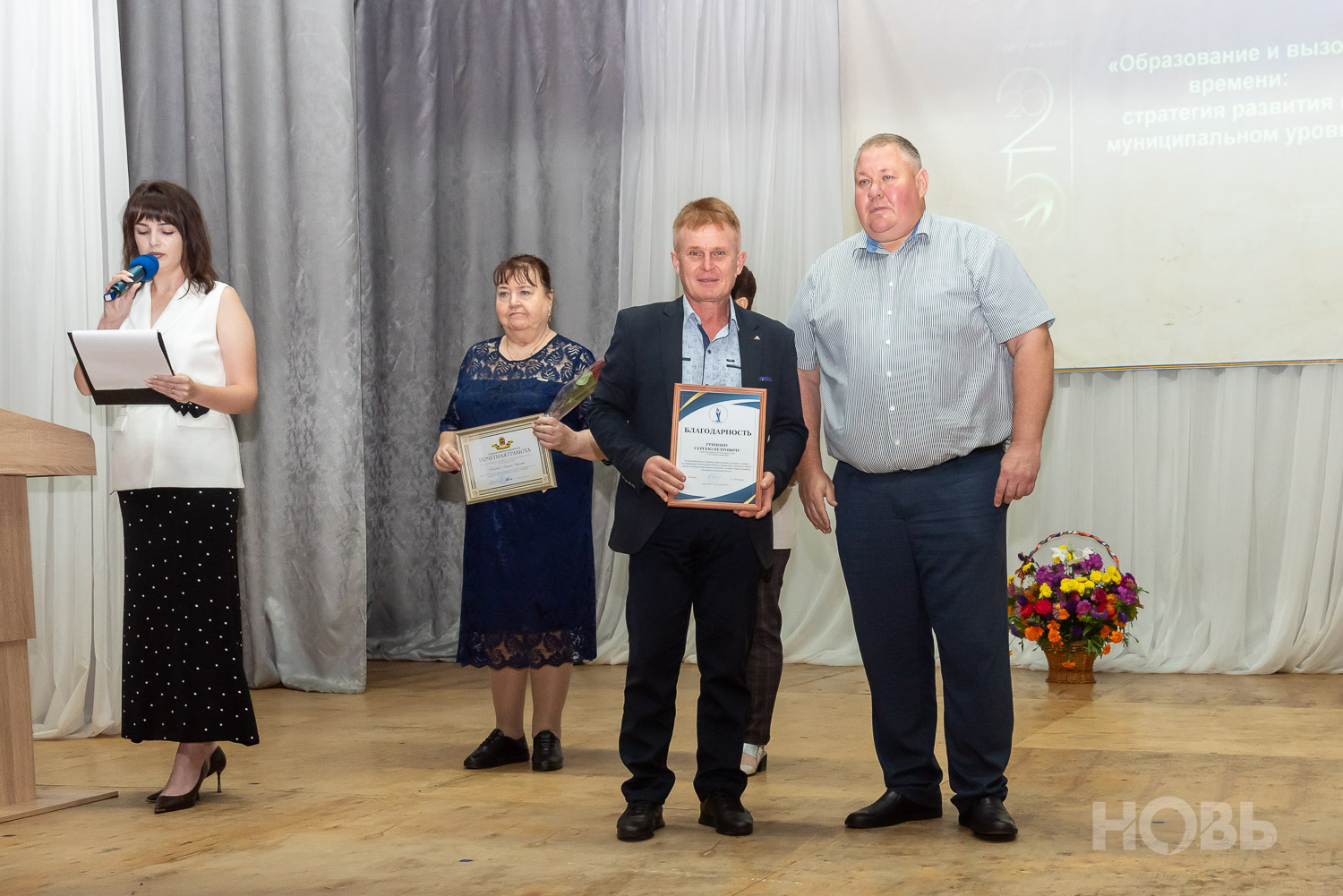 С приветственным словом к учителям обратился глава района Дмитрий Мануковский. Он поздравил педагогов с началом учебного года, пожелал успехов и здоровья, а также вручил ряд наград: свидетельство о присвоении звания «Почётный работник сферы образования РФ» Валентине Маршовой, почётные грамоты и благодарности - заслуженным педагогам района.