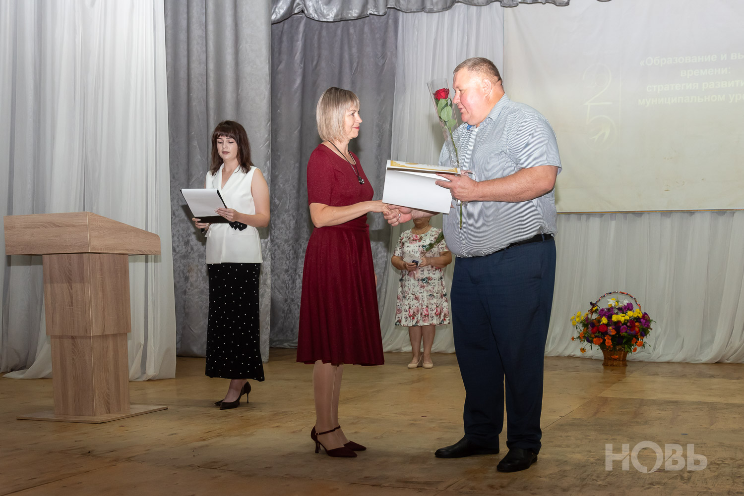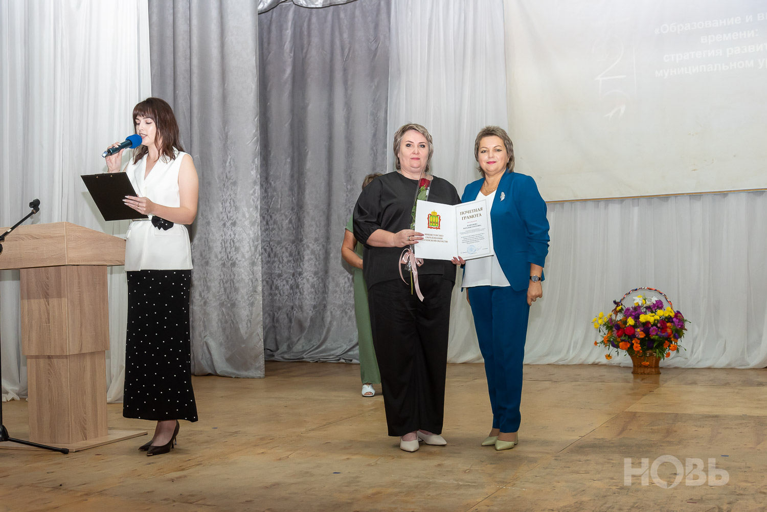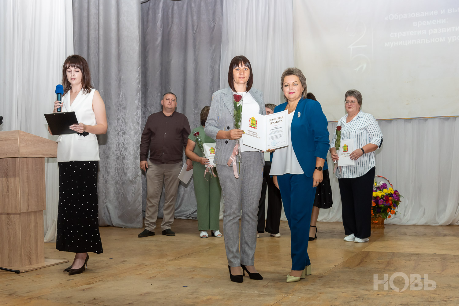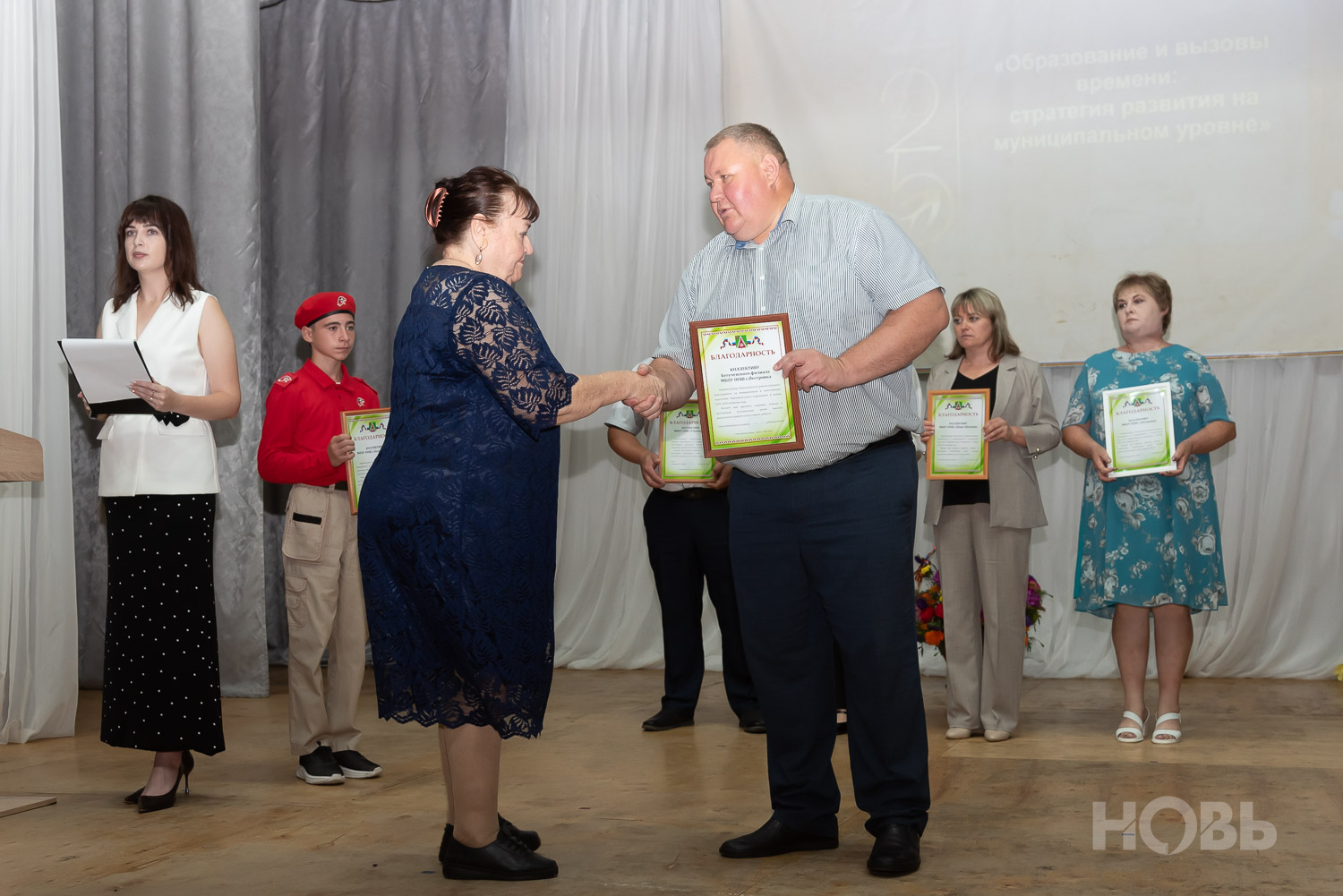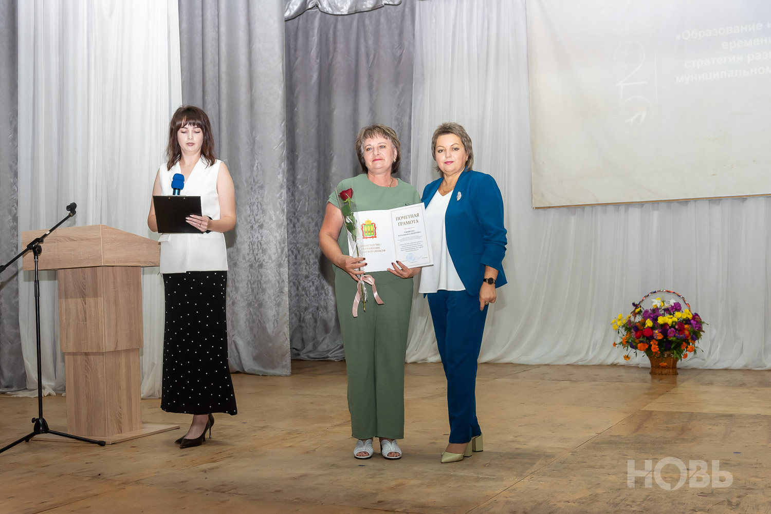 С приветственным словом к учителям обратился глава района Дмитрий Мануковский. Он поздравил педагогов с началом учебного года, пожелал успехов и здоровья, а также вручил ряд наград: свидетельство о присвоении звания «Почётный работник сферы образования РФ» Валентине Маршовой, почётные грамоты и благодарности - заслуженным педагогам района.