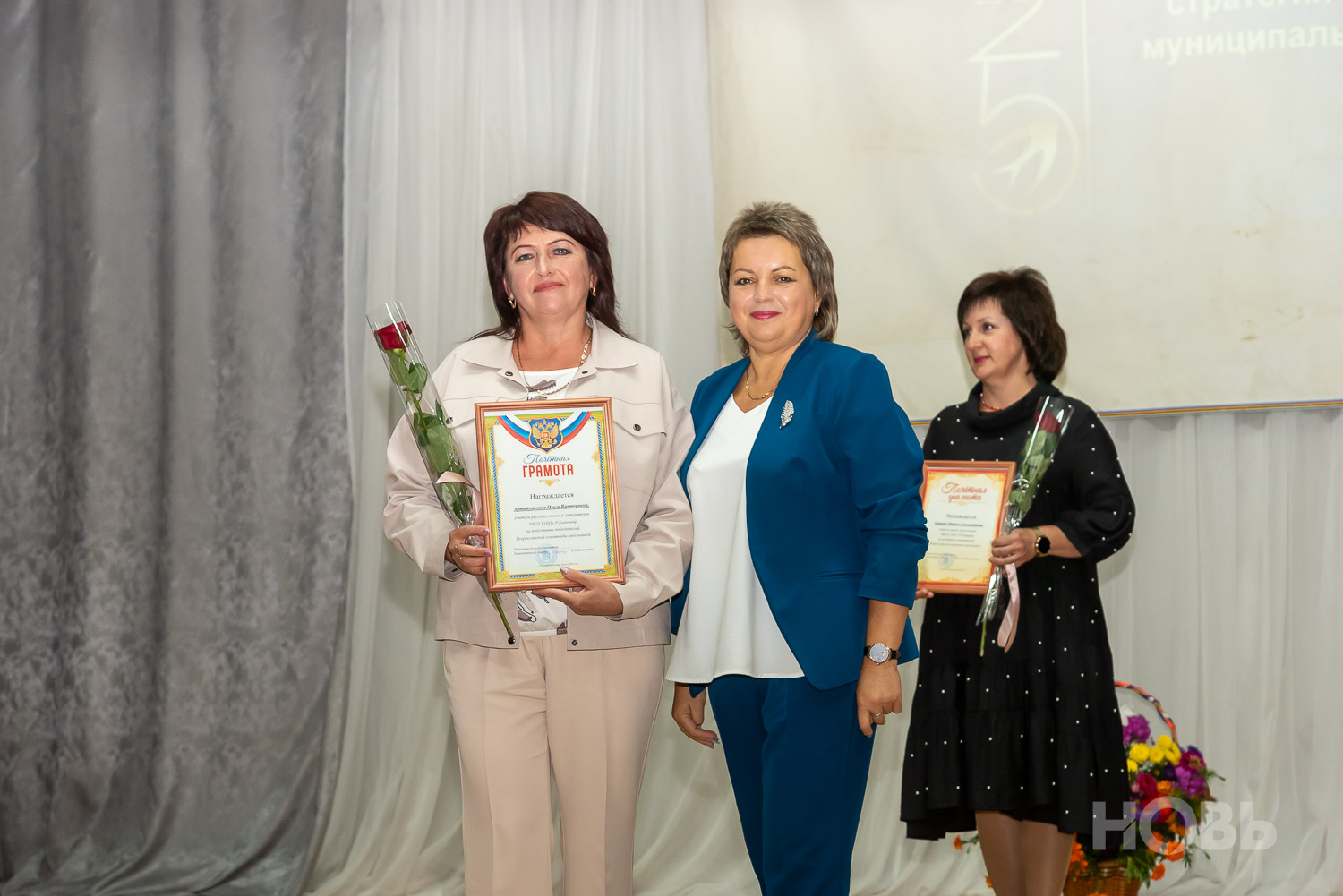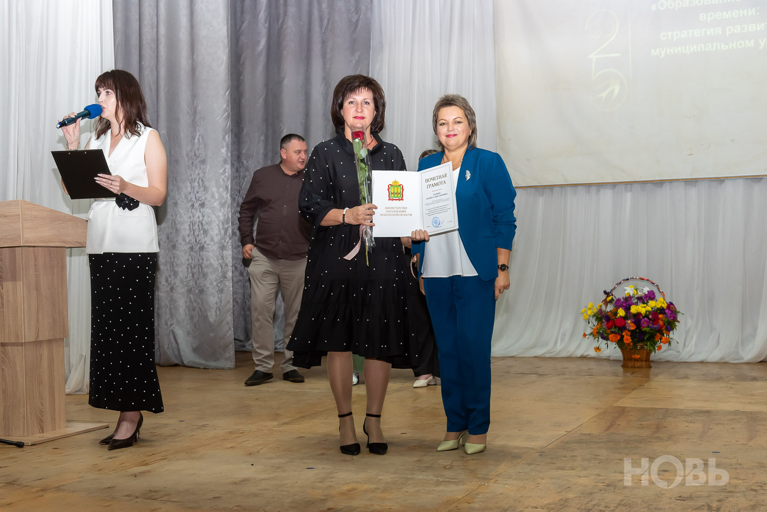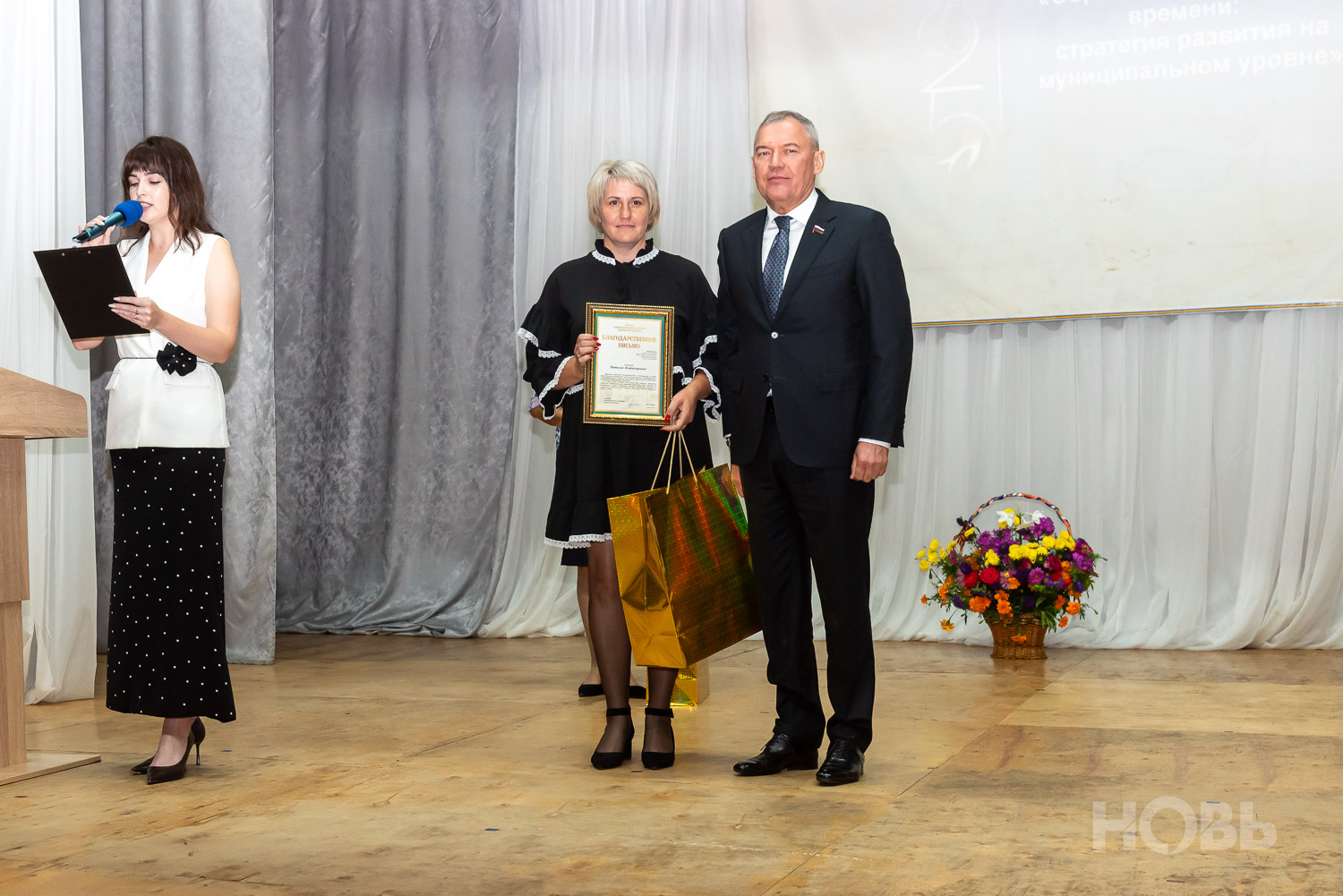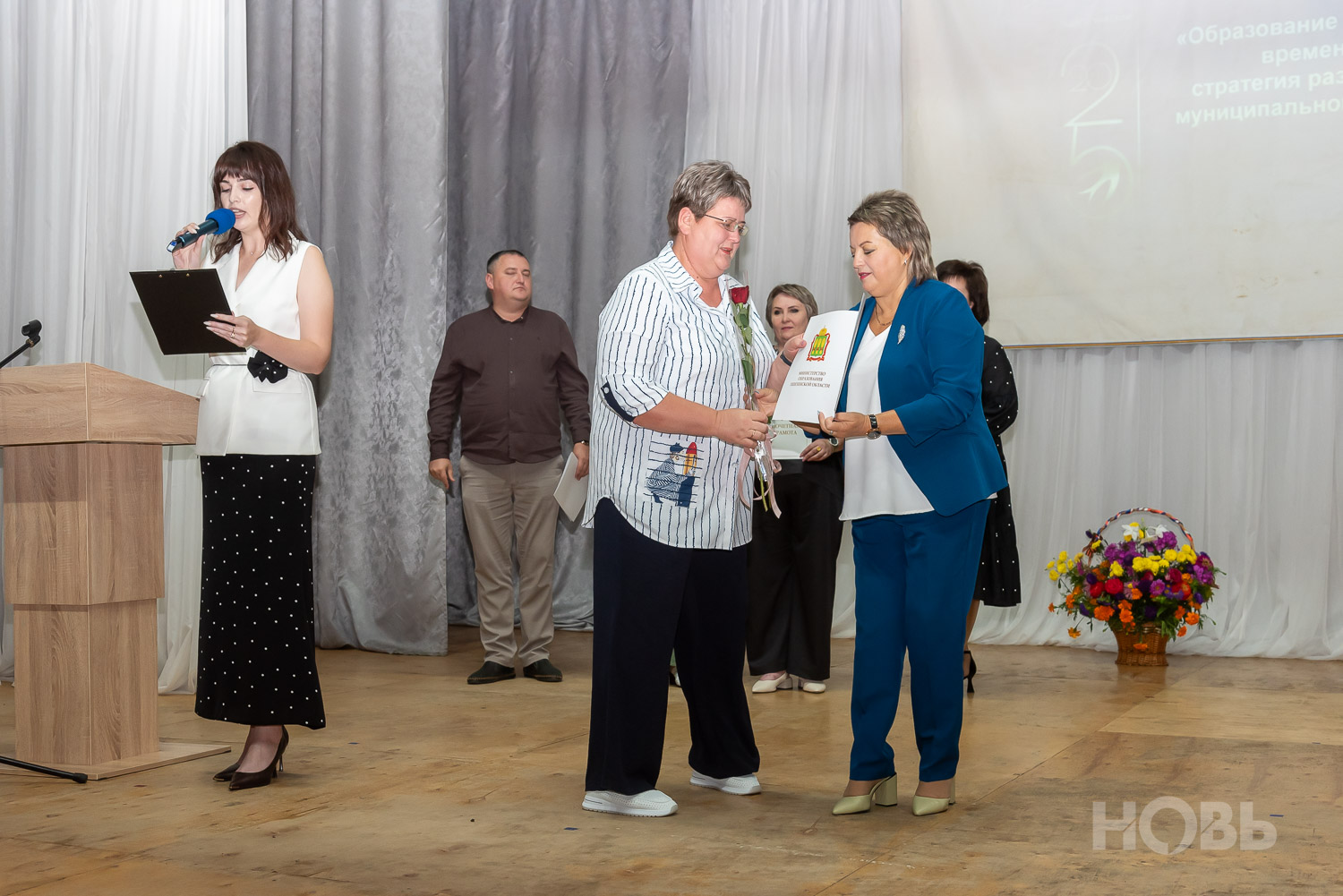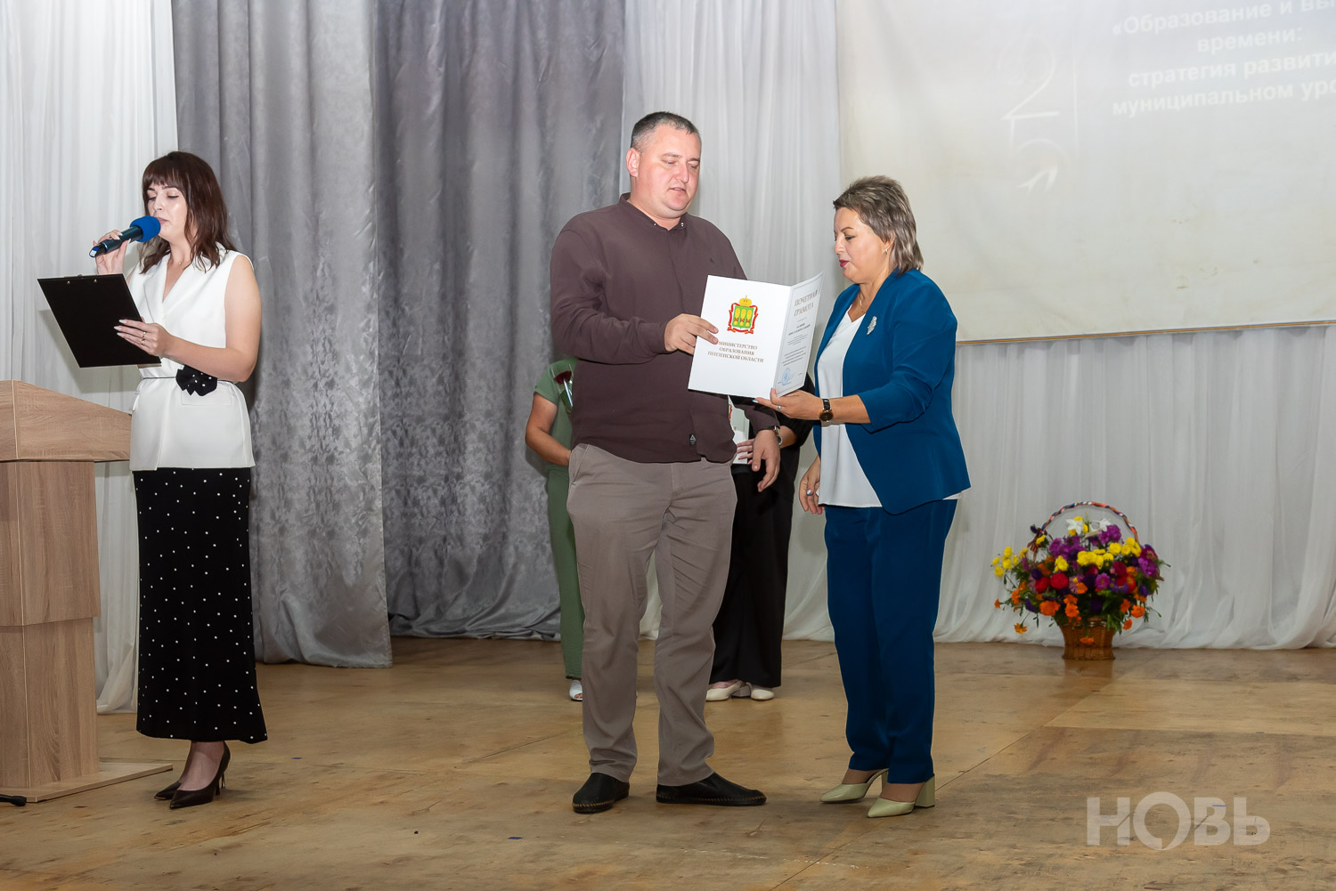 С приветственным словом к учителям обратился глава района Дмитрий Мануковский. Он поздравил педагогов с началом учебного года, пожелал успехов и здоровья, а также вручил ряд наград: свидетельство о присвоении звания «Почётный работник сферы образования РФ» Валентине Маршовой, почётные грамоты и благодарности - заслуженным педагогам района.