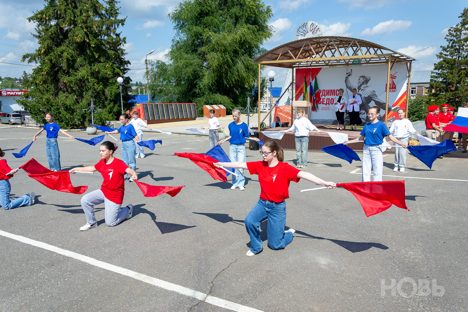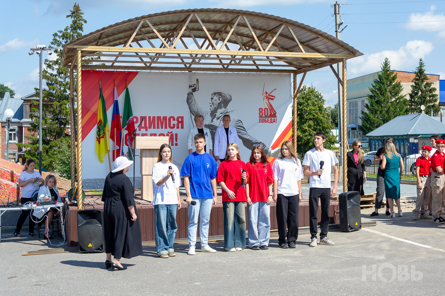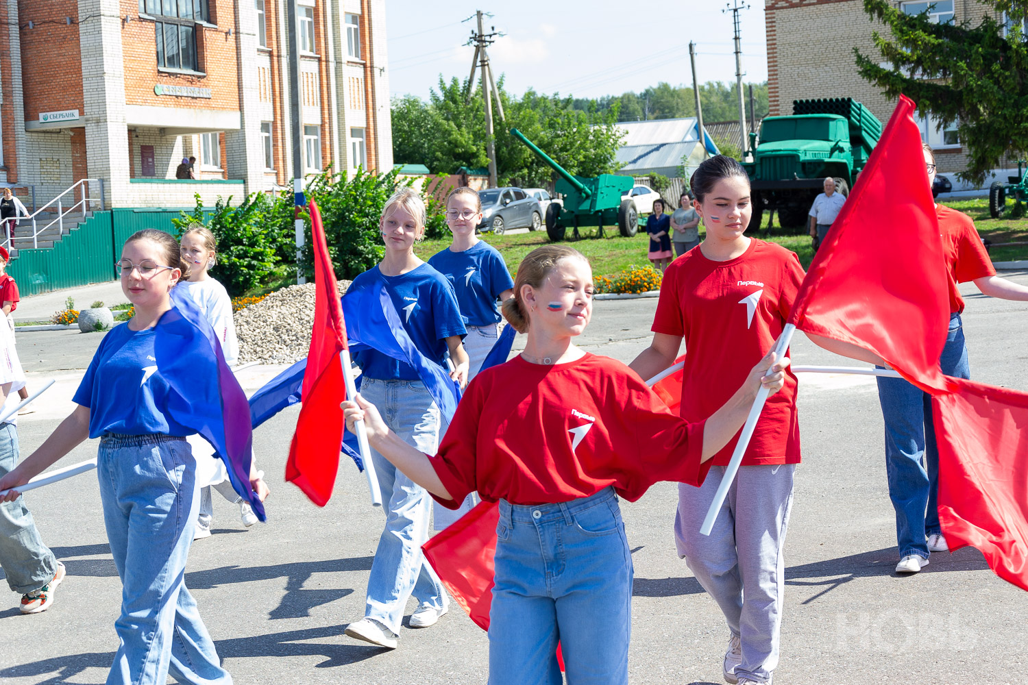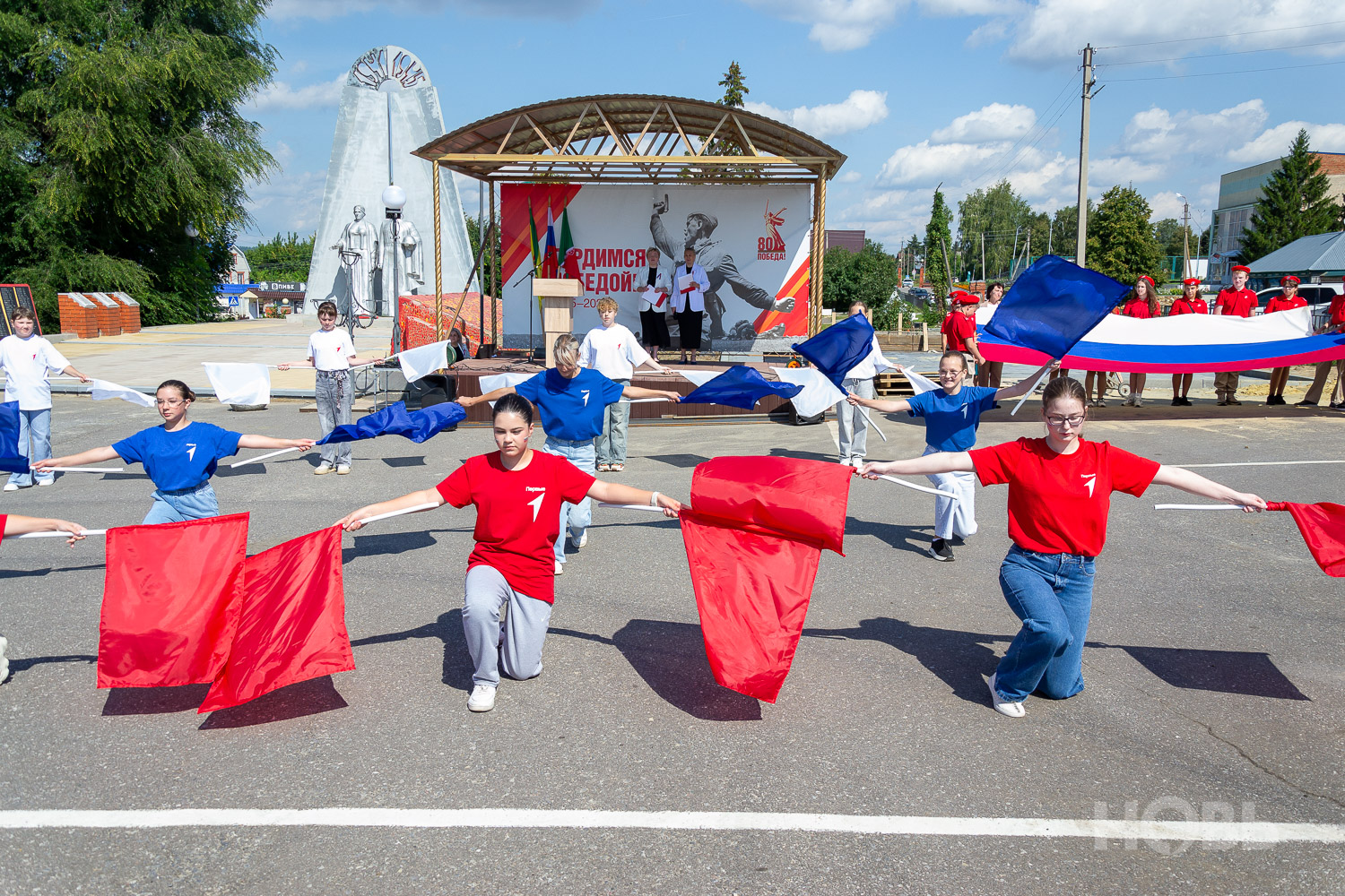 22 августа 2025 г., РИА Пензенской области. В Русском Камешкире состоялось мероприятие, посвящённое празднованию Дня флага Российской Федерации. На центральной площади Русского Камешкира собрались работники организаций района, жители села, школьники и активисты «Движения Первых».