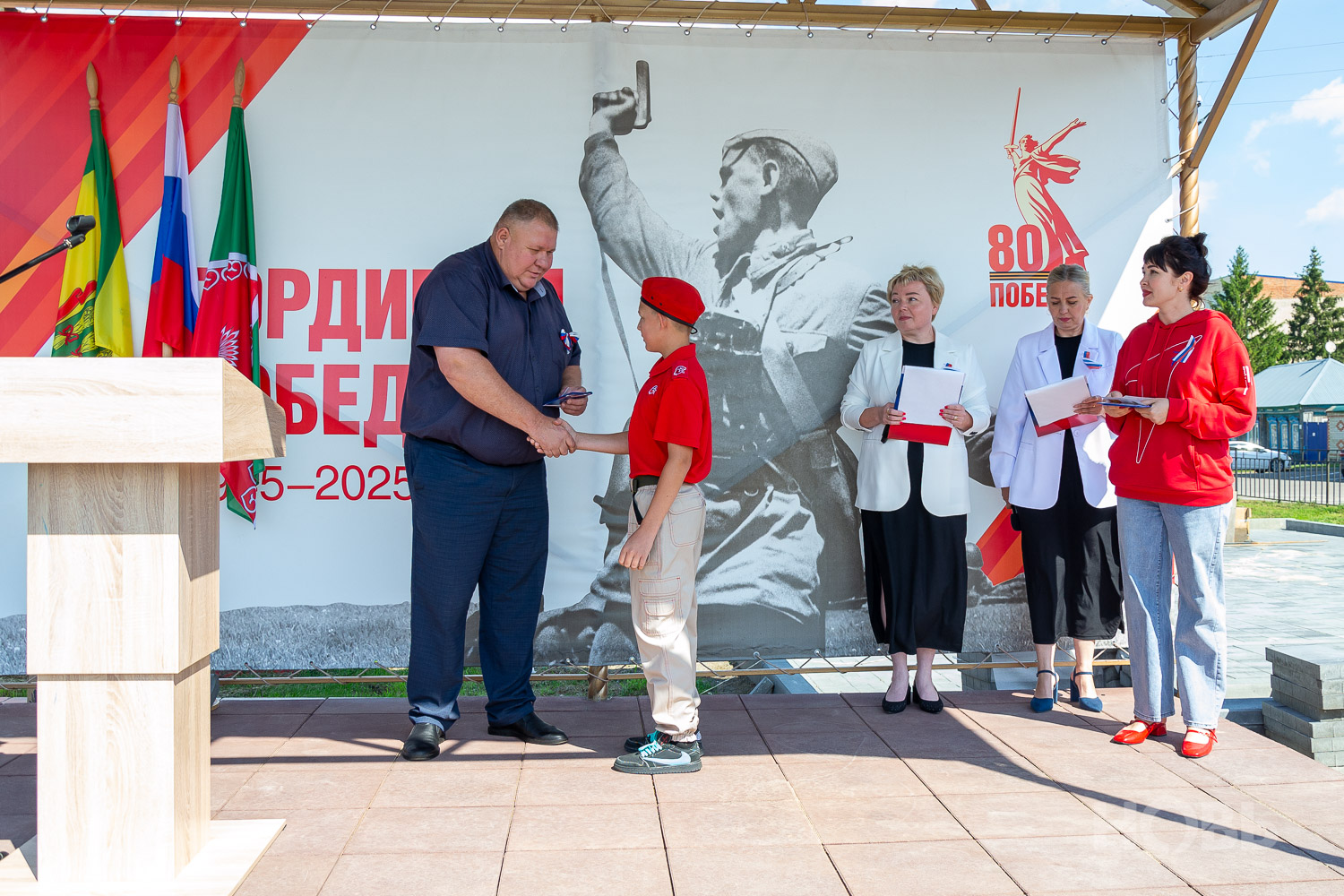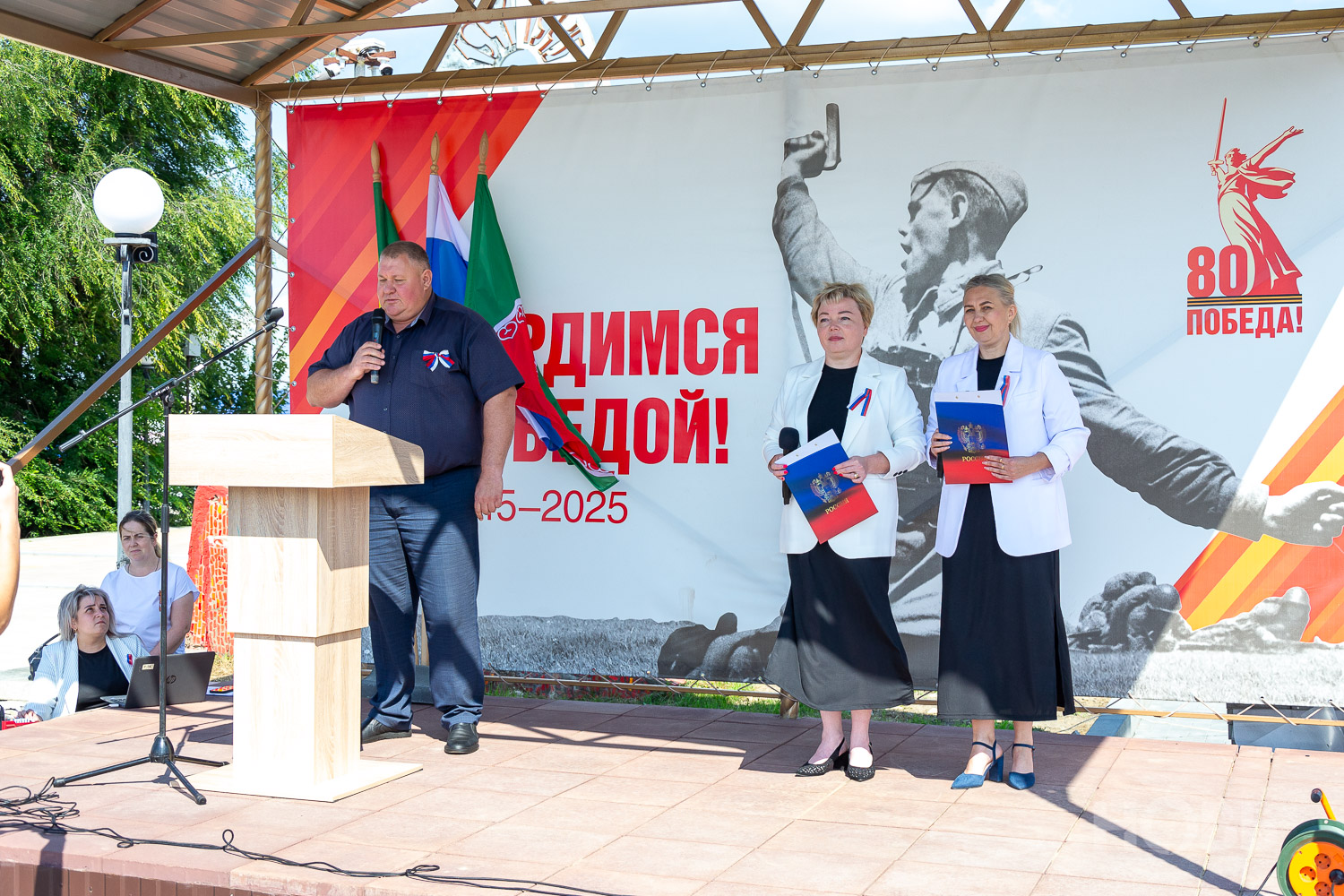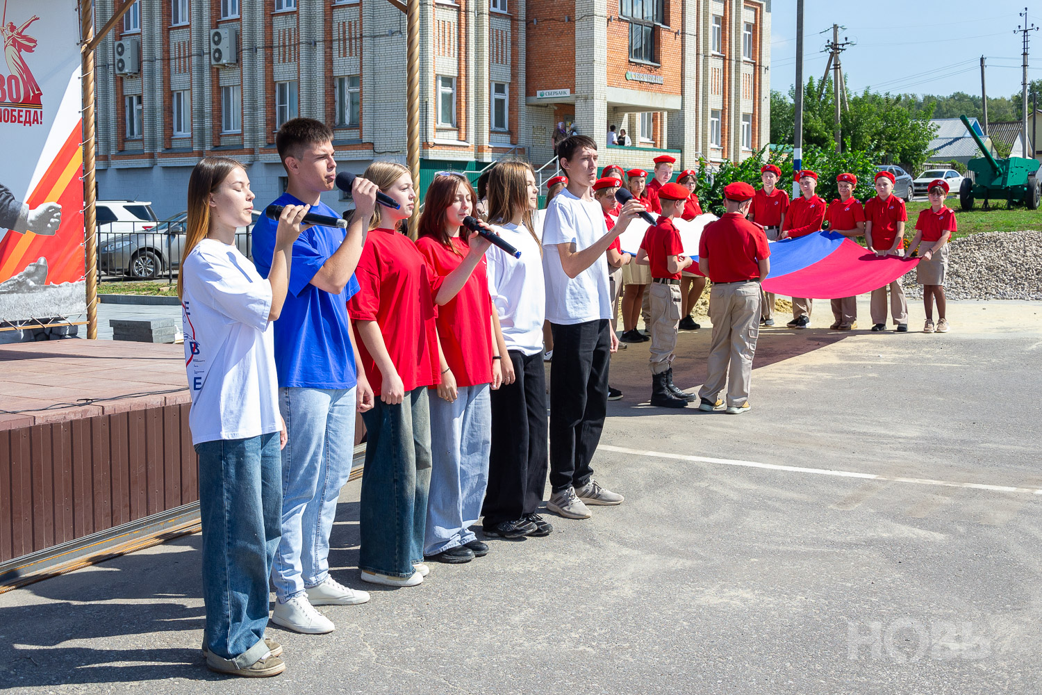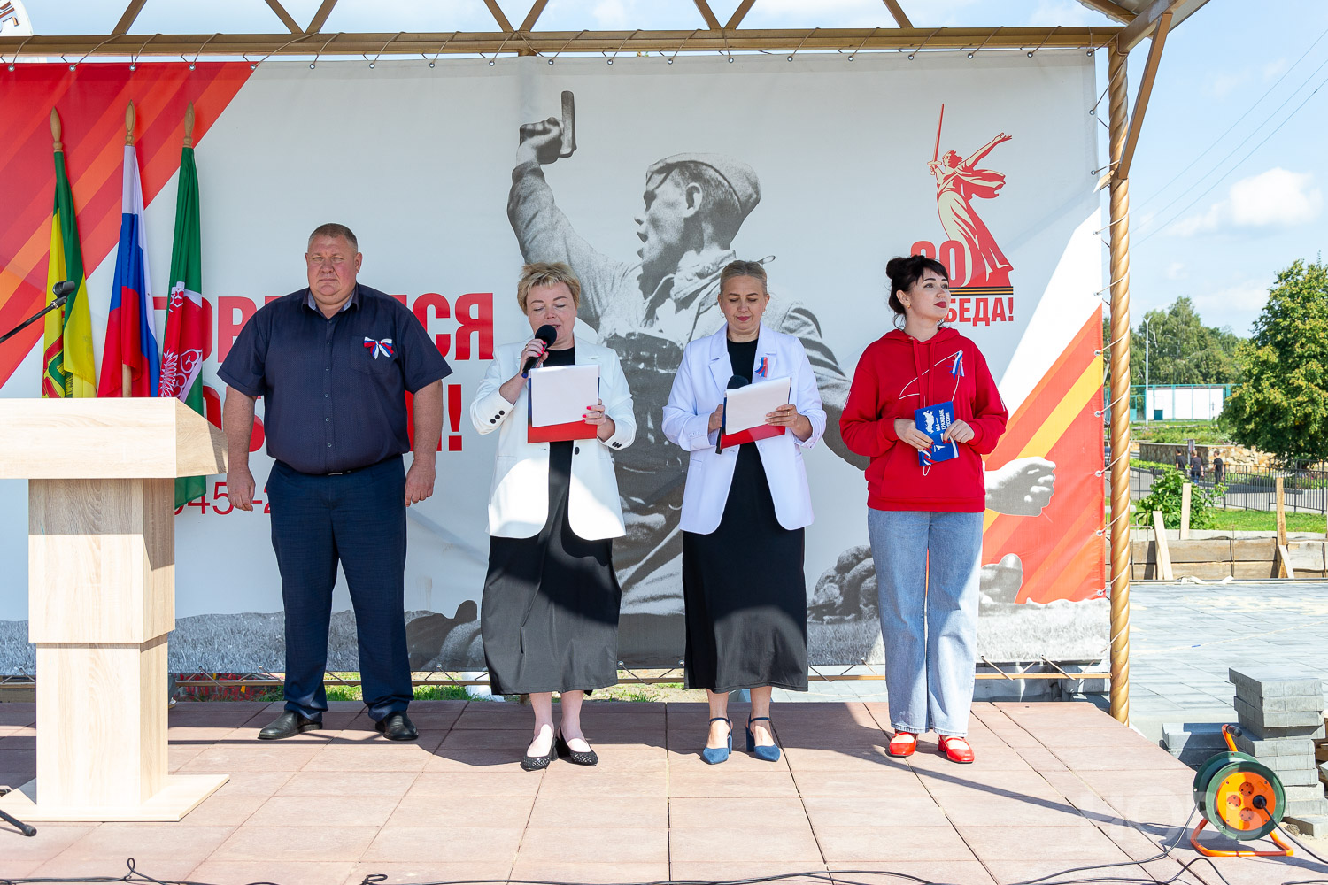 22 августа 2025 г., РИА Пензенской области. В Русском Камешкире состоялось мероприятие, посвящённое празднованию Дня флага Российской Федерации. На центральной площади Русского Камешкира собрались работники организаций района, жители села, школьники и активисты «Движения Первых».