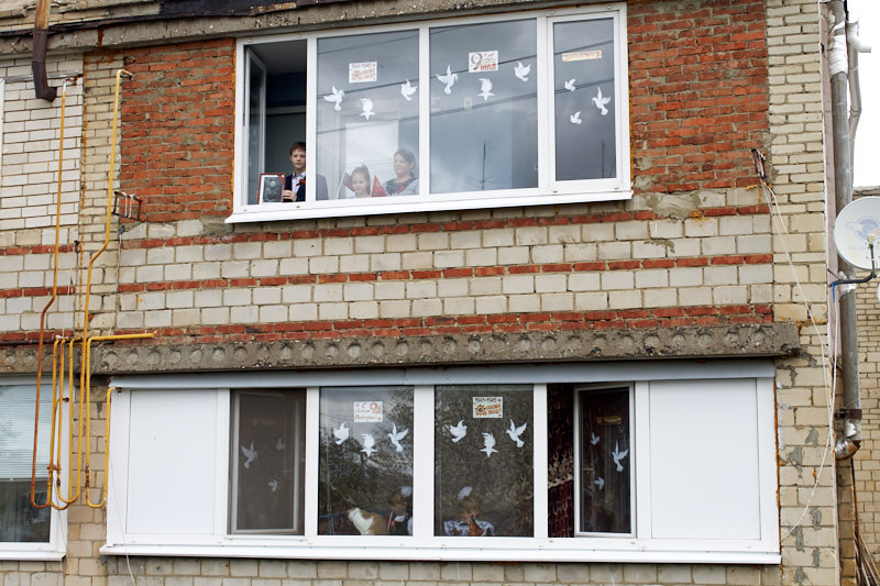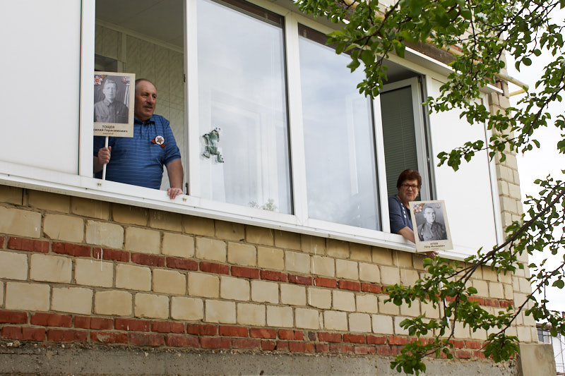 Соблюдая меры самоизоляции, жители открывали окна, выходили на балконы. Каждый выставлял фотографии своих близких, участников Великой Отечественной войны. Педагог-психолог образовательного учреждения Мария Алешкова снимала видеоролик мероприятия, которое можно посмотреть в Instagram школы.