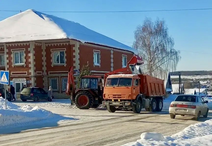 Основные усилия сосредоточены на приведении в порядок общественных пространств села Русский Камешкир, где в данный момент организован вывоз накопившихся сугробов.