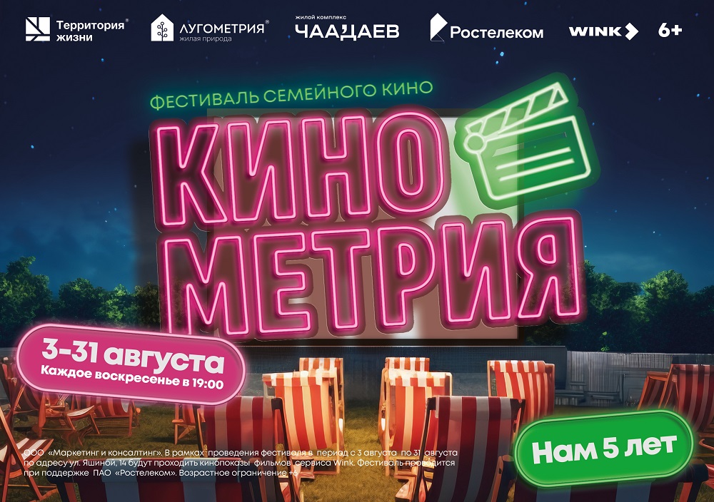 Ждем всех на открытии! 3 августа, 19.00. Приходите на юбилейную «Кинометрию»! Адрес: улица Яшиной, 14.