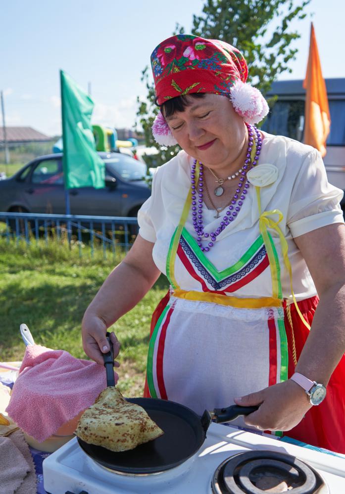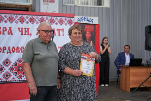 Поддерживать праздничное настроение помогали вкусные запахи от палаток с угощением и забавный медведь, готовый поделиться со всеми теплом своих объятий. А некоторые гости были готовы поделиться своими впечатлениями от праздника. Мария специально приехала в этот день из Саратова. Для неё мордовский язык родной, но в городе в её окружении на нём никто не разговаривает. Мария призналась, что для неё большая радость – общение на родном языке. А жительница Московской области Татьяна Варакина, приехавшая погостить к родственникам, не планировала попасть на День мордовской культуры, но с удовольствием поучаствовала в концертной программе. Она прочитала своё стихотворение, с которым заняла первое место в Турнире поэтов Москвы и Московской области, посвящённом 80-летию Победы. Стихотворение было написано по детским воспоминаниям об уроженце Китунькина Егоре Михайловиче Глухове и его рассказах о войне. Татьяна передаёт пожелания жителям Китунькина: