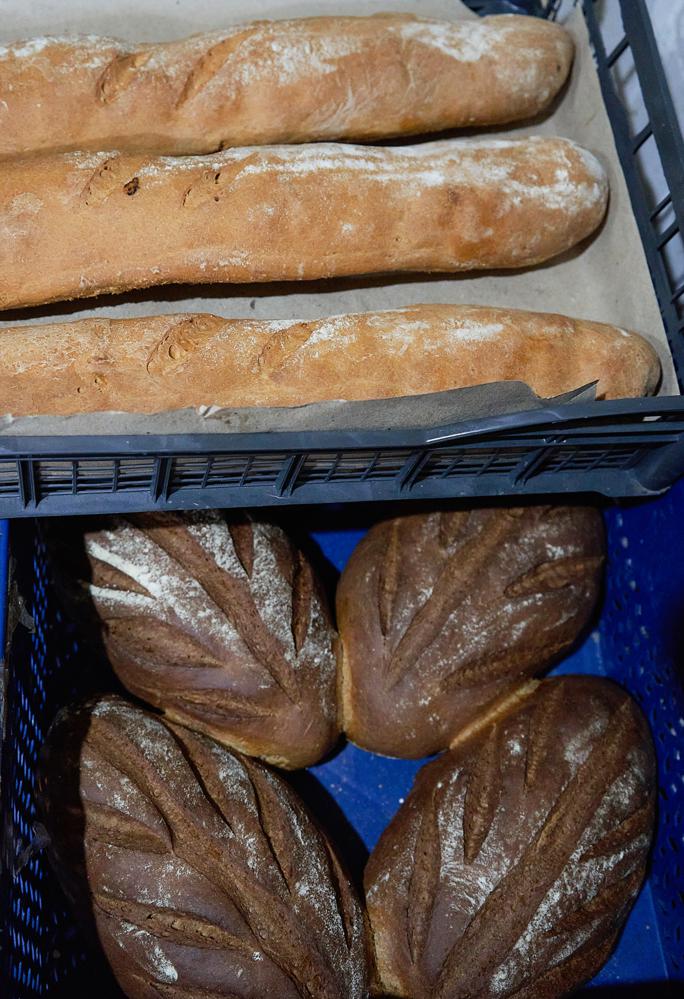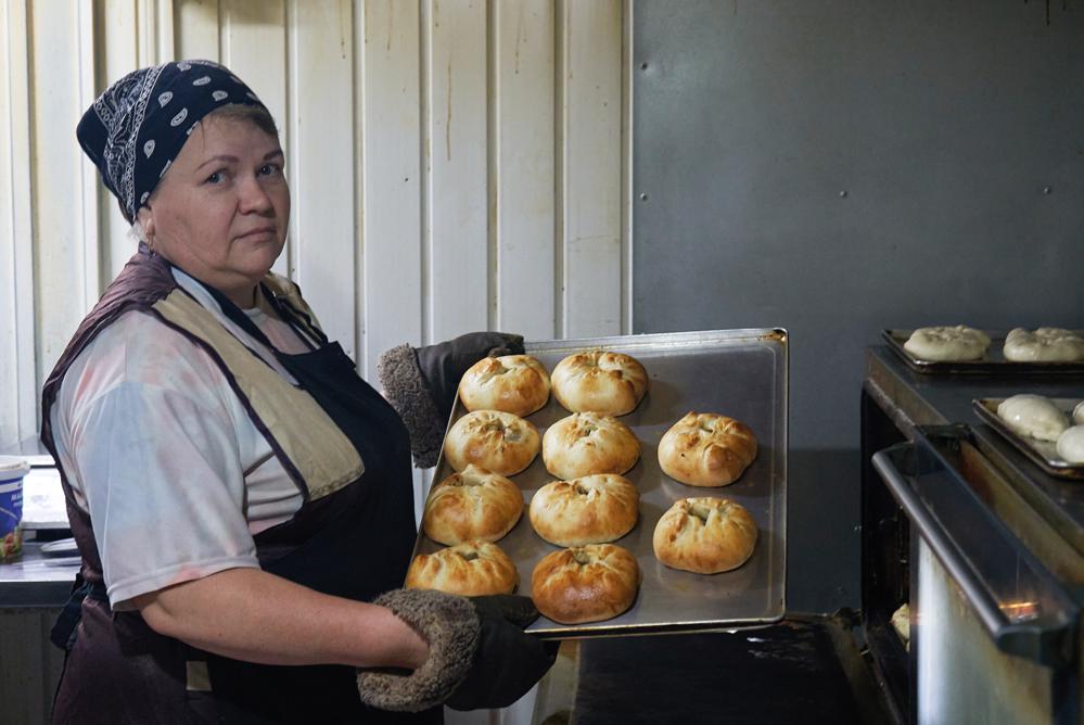 За одну смену в пекарне выпекают около 100 буханок хлеба. Большой популярностью у покупателей пользуются багеты, которые хоть и изготавливаются из обычного теста для хлеба, но почему-то кажется, что имеют другой вкус. Да и резать их удобно, кусочки получаются небольшие и аккуратные. Часто поступают заказы на поминальные пироги с различными начинками: с капустой, курагой или творогом. Полюбились многим заказчикам пироги с начинкой из соленого творога, в который добавляют рис.