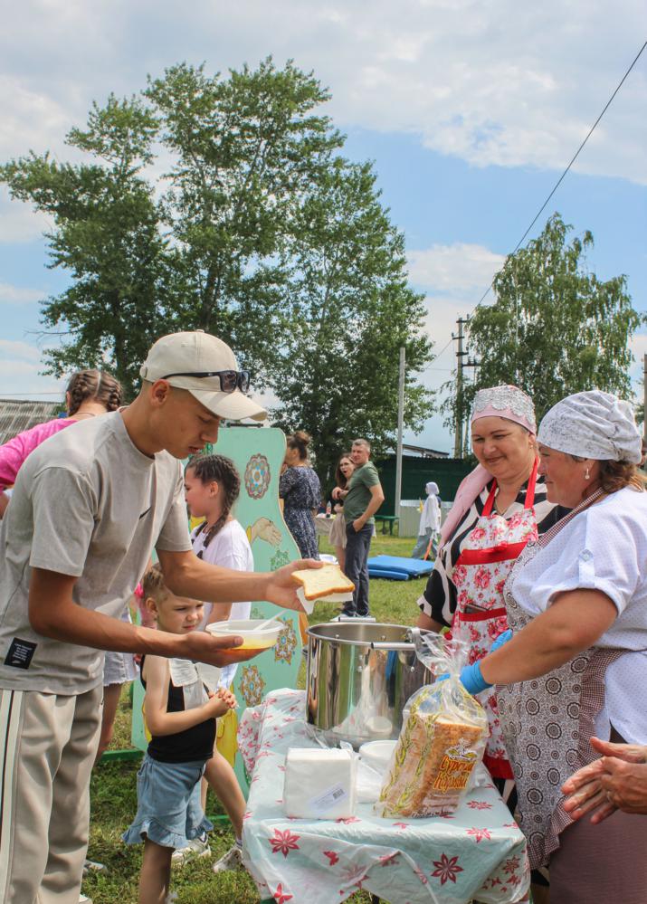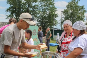 Мероприятие традиционно развернулось на территории школы, которая оживилась задолго до начала праздника. Взрослые изучали ассортимент торговых палаток, соблазняющих ароматом мясных деликатесов и прочими товарами, а детей, естественно, привлекали прилавки с игрушками, сладостями и батут, где можно вдоволь порезвиться. И те, и другие с интересом осматривали шатёр, в котором были представлены элементы старинного быта, задерживались у экспозиции с работами мастеров-умельцев, книжной выставки. Желающие угощались пирогами и традиционной татарской выпечкой, а также ароматным супом с домашней лапшой – её мастерицы приготовили прямо во время праздника.