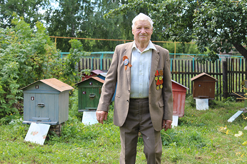 Хозяина дома мы увидели в саду среди ульев. С первого взгляда даже не верится, что он отмечает 90-летний юбилей. По внешнему виду это мужчина лет 70, который уверенно, без маски, обходил своё пчелиное царство. Да, по всему мать-природа наделила этого человека всем – и крепким телом, и твёрдым характером, незаурядным умом.
