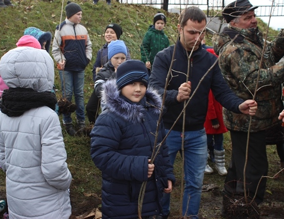10.11.2017, РИА Пензенской области, Мокшанский район Учащиеся Мокшанской школы №1 на пришкольном участке посадили саженцы рябины.