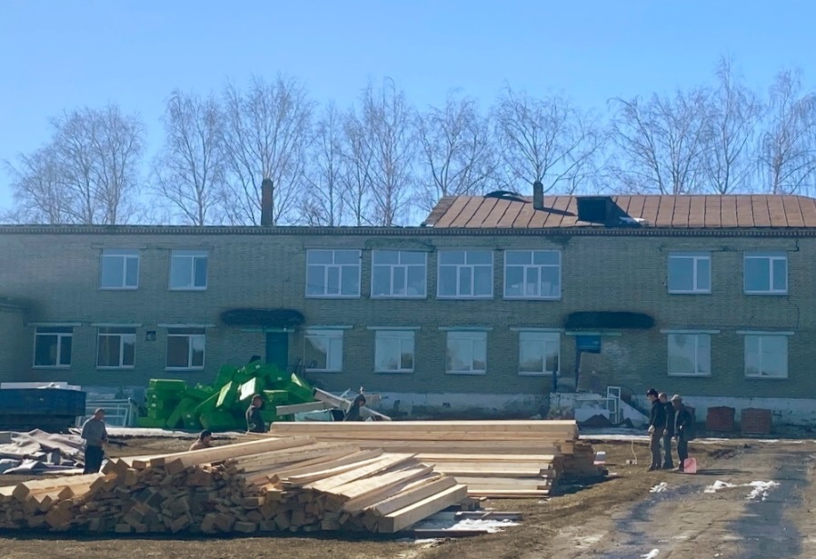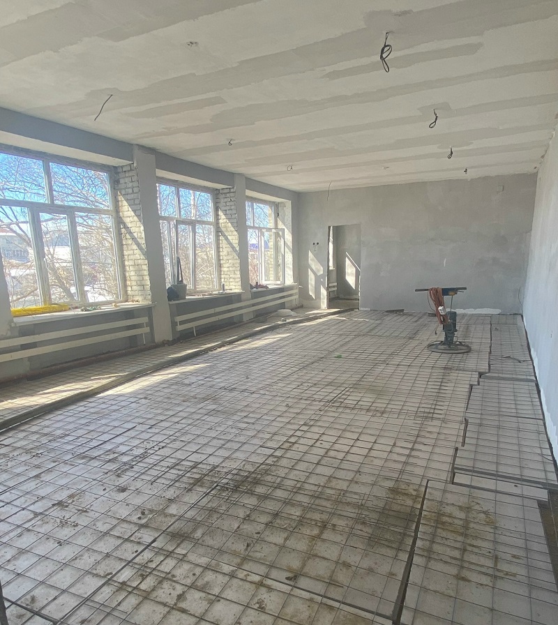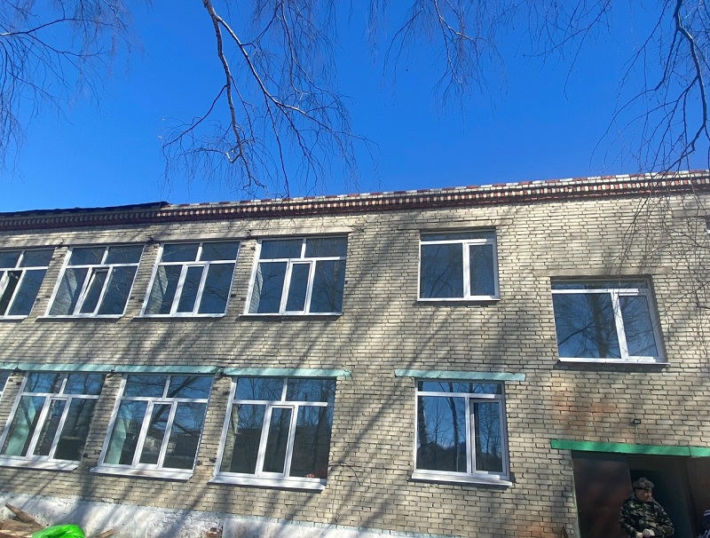 Подрядная организация уже заменила оконные блоки на первом и втором этажах. Ведутся штукатурные и электромонтажные работы, обустройство полов и демонтаж кровли. На объекте ежедневно работают 13 специалистов.