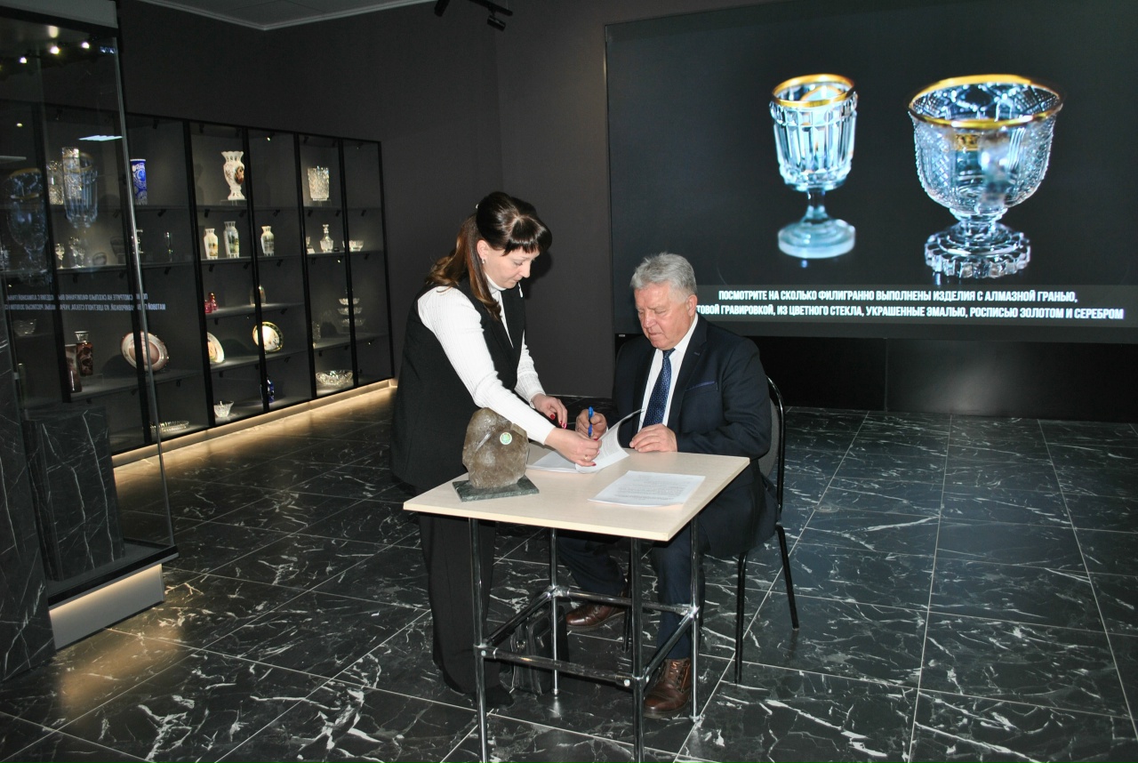 Советник губернатора Пензенской области Николай Гудожников пополнил коллекцию Никольского музея стекла и хрусталя новым экспонатом. В ходе визита он передал в дар учреждению образец горного хрусталя, добытого в Ханты-Мансийске.