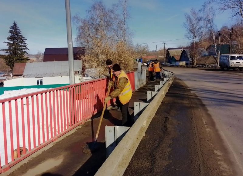 В рамках месячника по благоустройству и санитарной очистке населенных пунктов проводится ворошение снега, очистка мостов, тротуаров, ливневок.