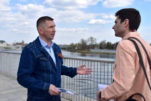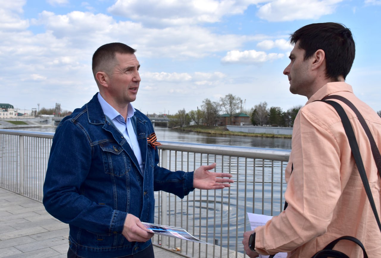 Сегодня вместе с представителем подрядной организации Олег Денисов обсудил детали по установке будущей сцены на воде.