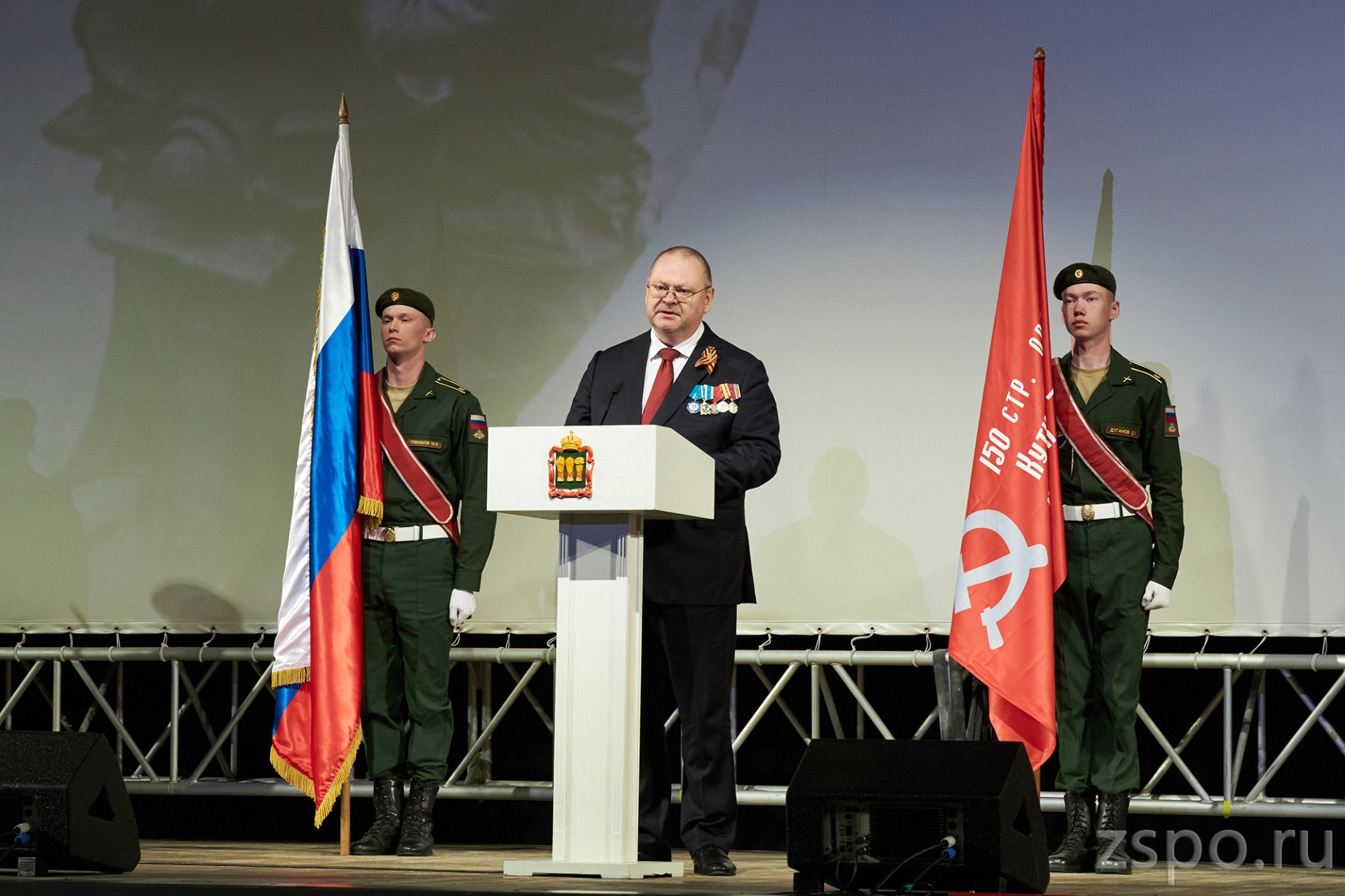 На Юбилейной площади показательные выступления провели будущие кадровые военные – курсанты филиала Военной академии. В фойе киноконцертного зала «Пенза» работали тематические выставки. С наступающим всенародным праздником – Днем Победы пензенцев поздравил губернатор Олег Мельниченко, отметивший весомый вклад жителей нашего региона в разгром нацистской Германии. В годы Великой Отечественной войны 312 тысяч пензенцев ушли на фронт. Погибли, умерли от ран или пропали без вести 190 тысяч человек. На территории Пензенской области было сформировано 7 стрелковых дивизий. В строительстве Сурского оборонительного рубежа принимало участие около 100 тысяч пензенцев. Трудовые подвиги совершали наши земляки в тылу, обеспечивая фронт вооружением, военной формой, продовольствием.