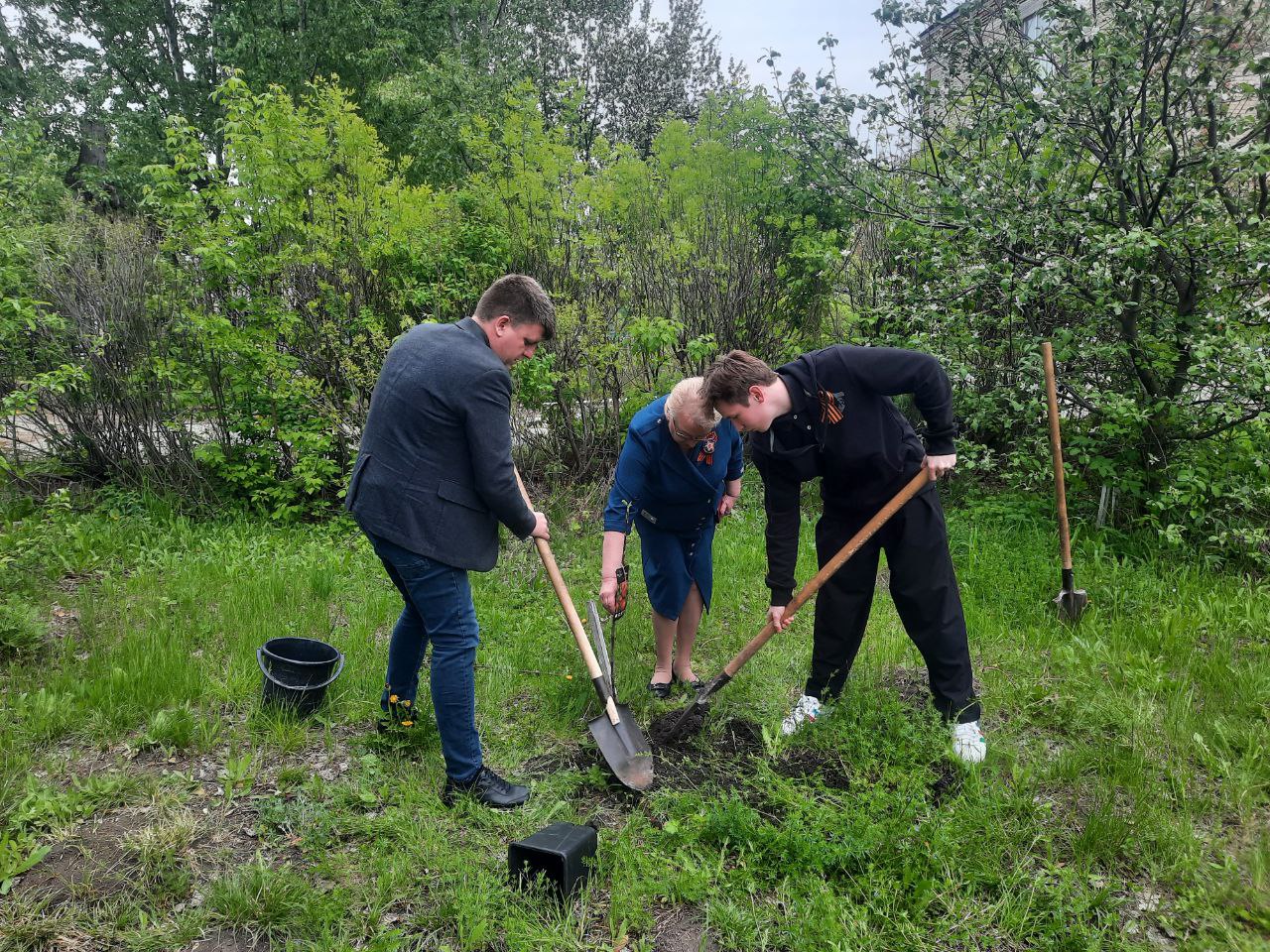 Активисты высадили на территории учебного заведения яблони и груши в память героях Великой Отечественной войны, отдавших свои жизни за мирное небо над головой.
