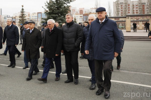 Официальные лица осмотрели Мемориал памяти Героям Великой Отечественной войны с памятными табличками, на которых указаны имена Героев Советского Союза, Героев Социалистического труда и полных кавалеров Орденов Славы - уроженцев Татарской АССР. В годы Великой Отечественной войны Татарстан стал кузницей резерва для действующей армии. Из Республики было призвано около 700 тысяч человек, каждый второй из них не вернулся с фронта. Их имена занесены в 27-томную Книгу Памяти, цель которой - увековечить подвиги татарстанцев.