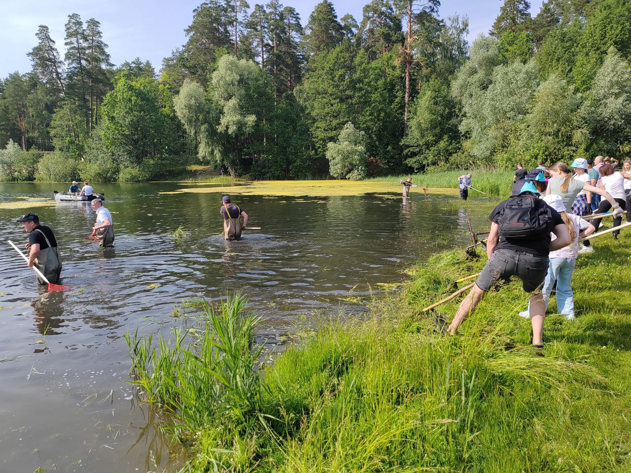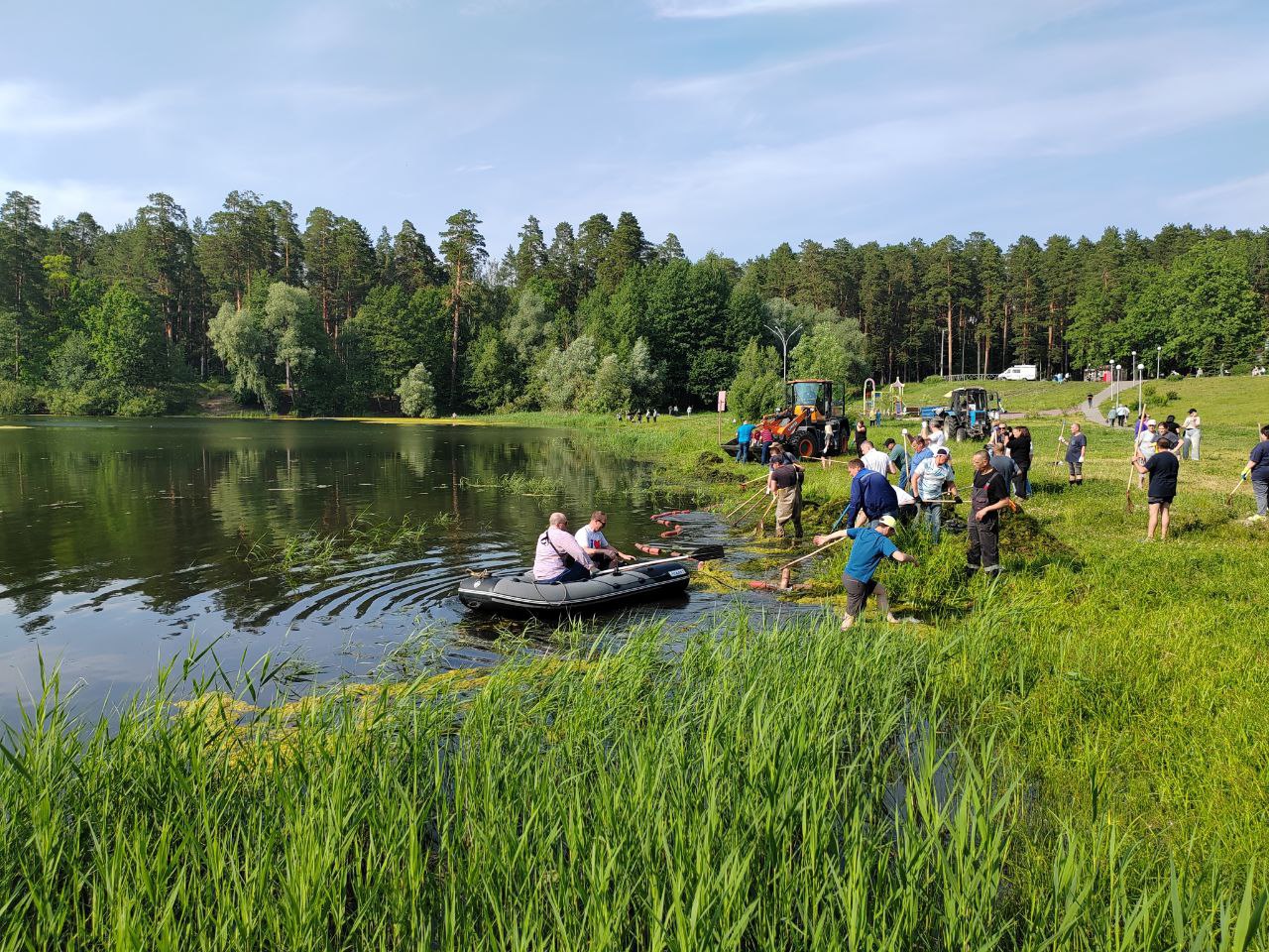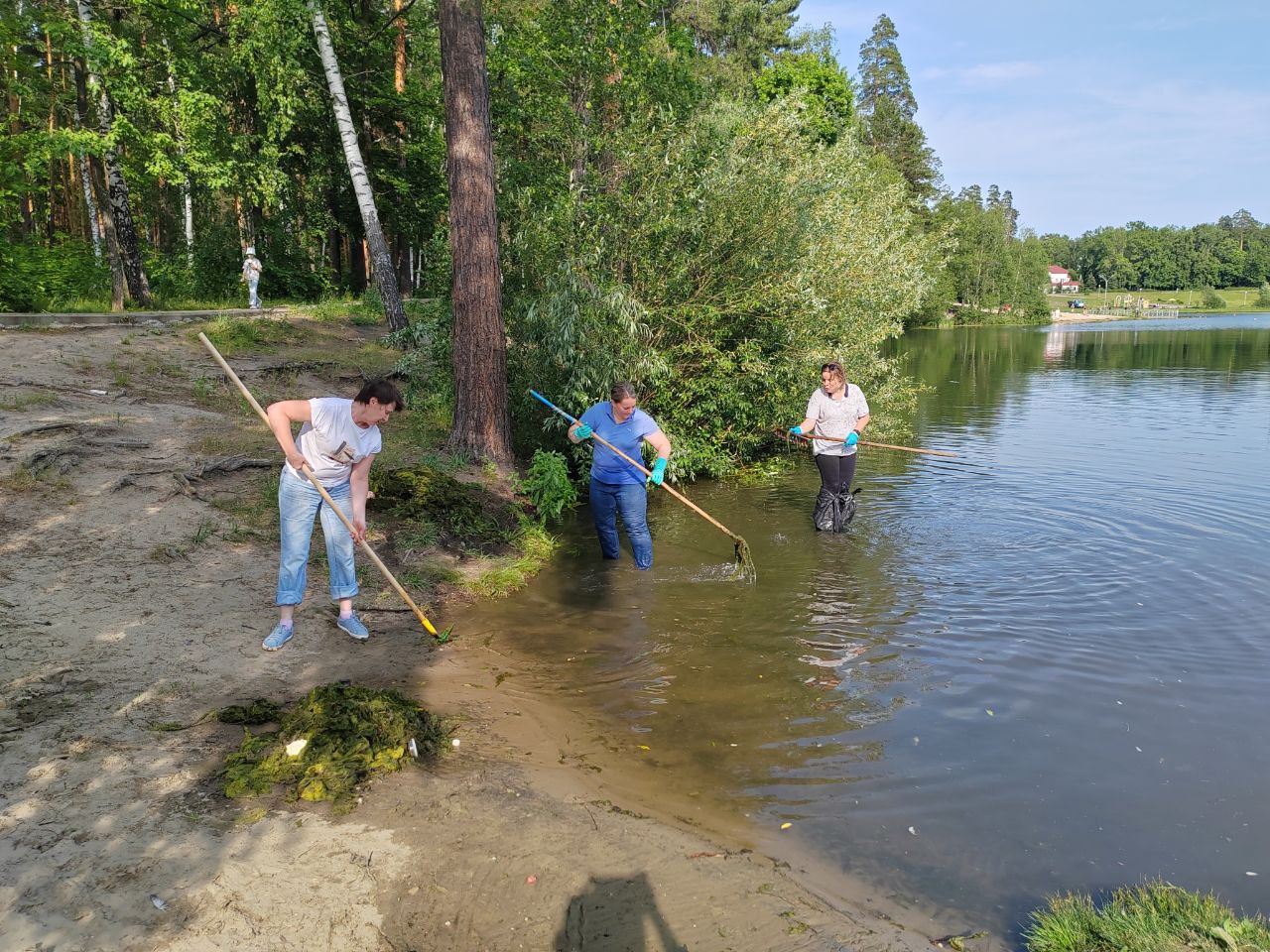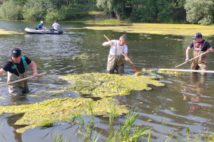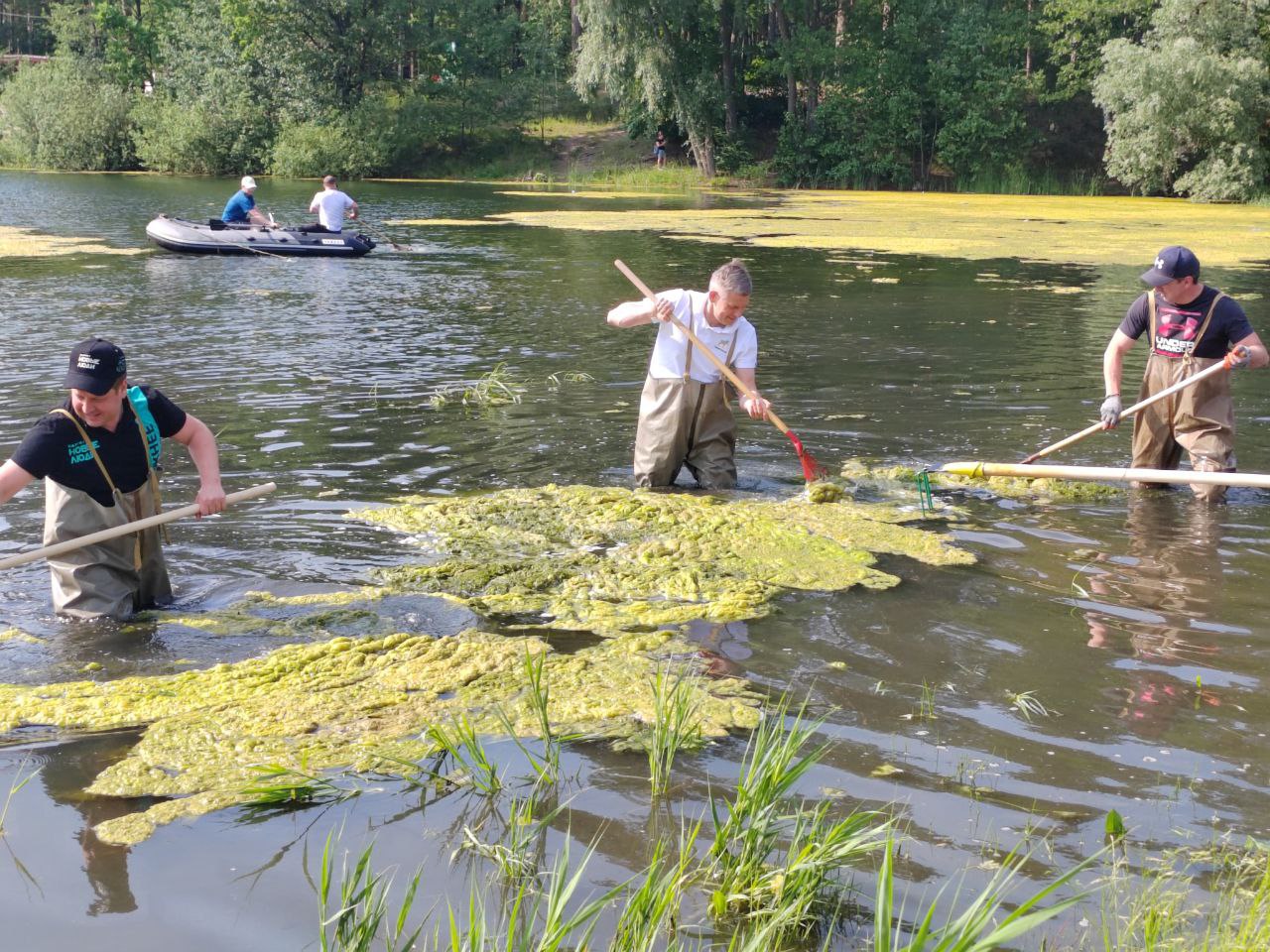 В Заречном Пензенской области в зоне отдыха «Лесная» прошло мероприятие по удалению плавающих водорослей из водоема.