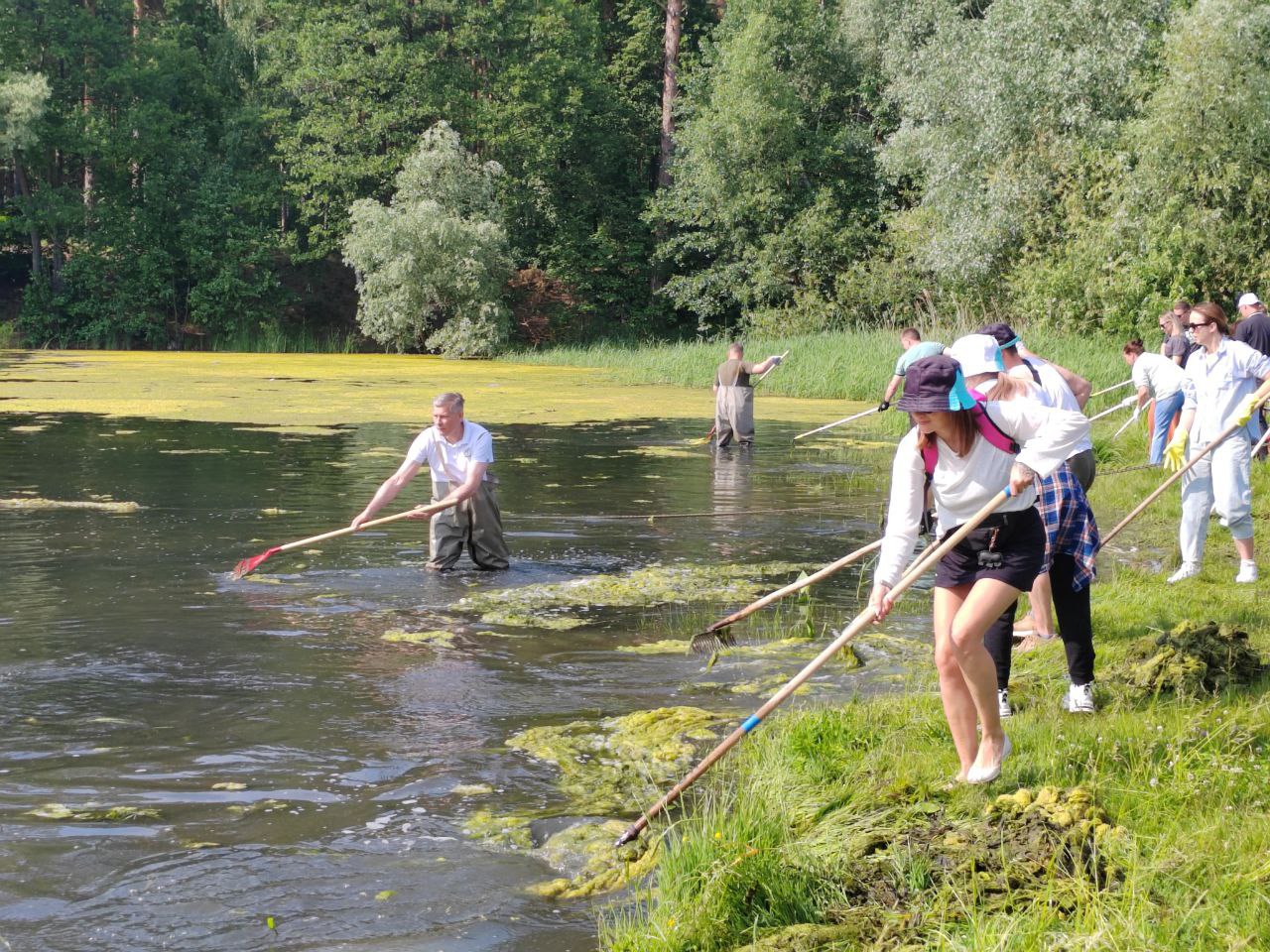 Глава Заречного Алексей Костин принял участие в очистке пруда от водорослей