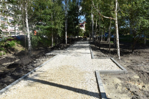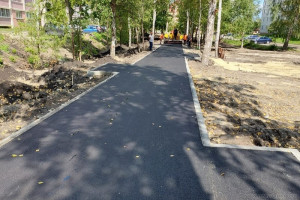 На объекте уже установлен бортовой камень, обустроены карманы для восьми скамеек и такого же количества урн. Прогулочная территория засыпана щебнем, завершается асфальтировка. После планируется завезти дополнительно 400 кубометров чернозема для отсыпки зеленой зоны, чтобы минимизировать неровность местности, сообщили в мэрии.
