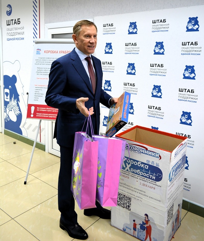 26 ноября 2025 г., РИА Пензенской области. Депутат Государственной Думы РФ Игорь Руденский принял участие в ежегодной благотворительной акции «Коробка храбрости», которая проходит по инициативе партии «Единая Россия».