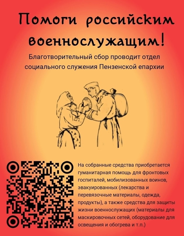 Принести посылки можно до 12 апреля в храм преподобного Серафима Саровского (г. Пенза, ул. Клары Цеткин, 61) ежедневно с 7:00 до 18:00, телефон 8-953-021-69-64.