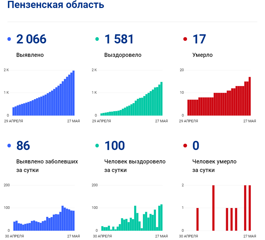 По данным федерального Оперативного штаба, в Пензенской области 28 мая было выявлено 86 новых случаев заражения коронавирусом. Таким образом, общее число заболевших в регионе составляет – 2066 человек.