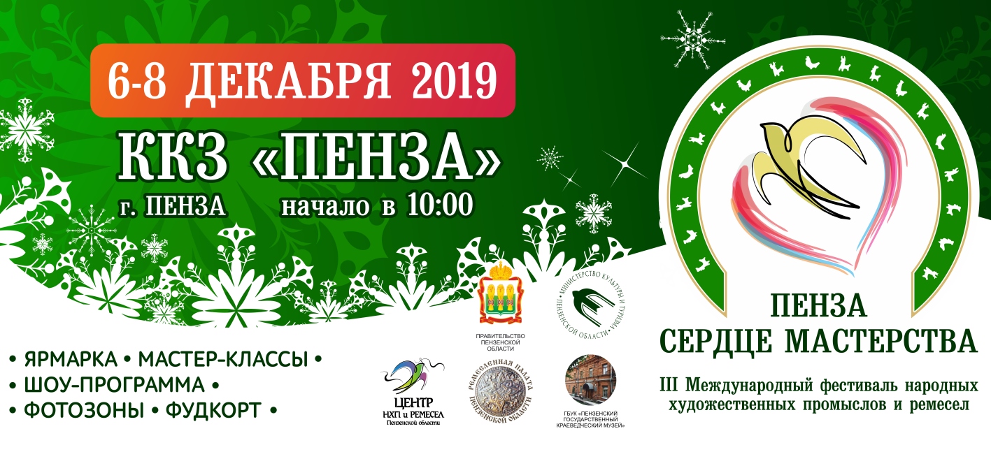 В пятницу, 6 декабря, откроется III Международный фестиваль народных художественных промыслов и ремесел «Пенза - сердце мастерства». В этом году он объединит более 200 умельцев и будет проходить в киноконцертном зале «Пенза». Об этом сообщили в пресс-службе министерства культуры и туризма региона.
