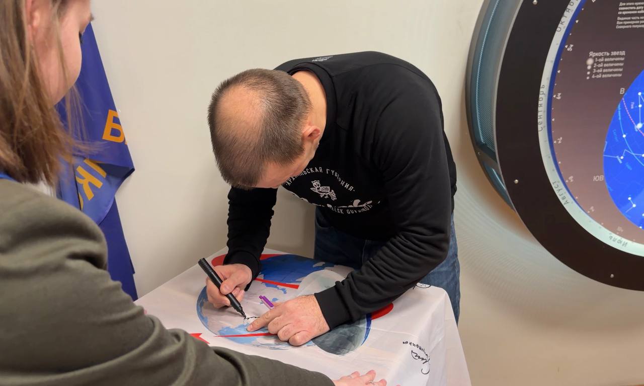 Иван Вагнер, совершивший два космических полета на МКС (в 2020 и 2024 годах), осмотрел три экспозиционных зала. В Зале истории космонавтики ему показали уникальный Российский Флаг, побывавший с ним в экспедиции. В Звездном зале имени В.И. Пацаева гостю продемонстрировали возможности оптико-механического проектора.
