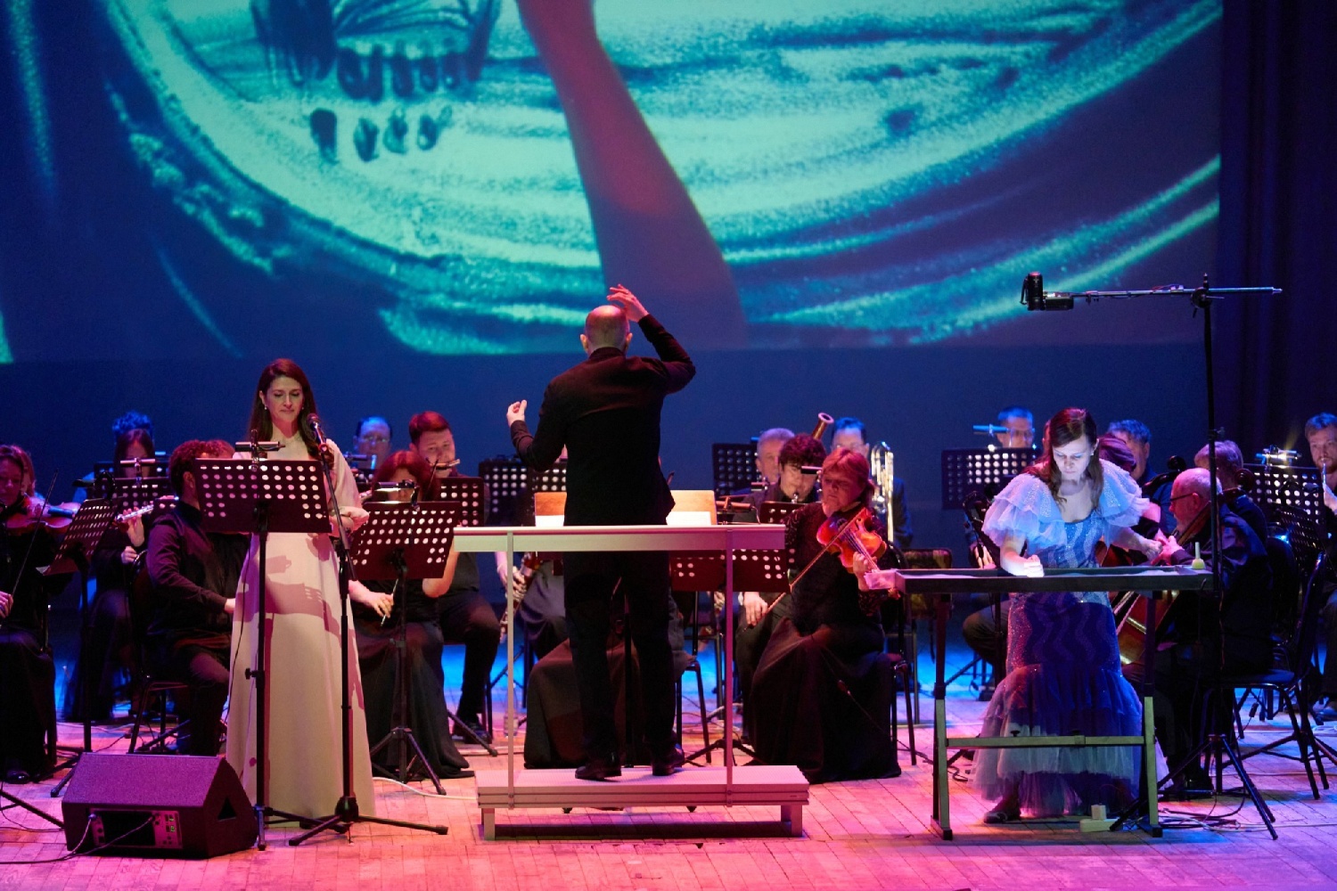 Сюжет музыкально и литературно инсценировали капеллы под управлением заслуженного артиста Пензенской области Вячеслава Филиппенкова, а также чтец Людмила Солдатова и художник по песку Катерина Барсукова.