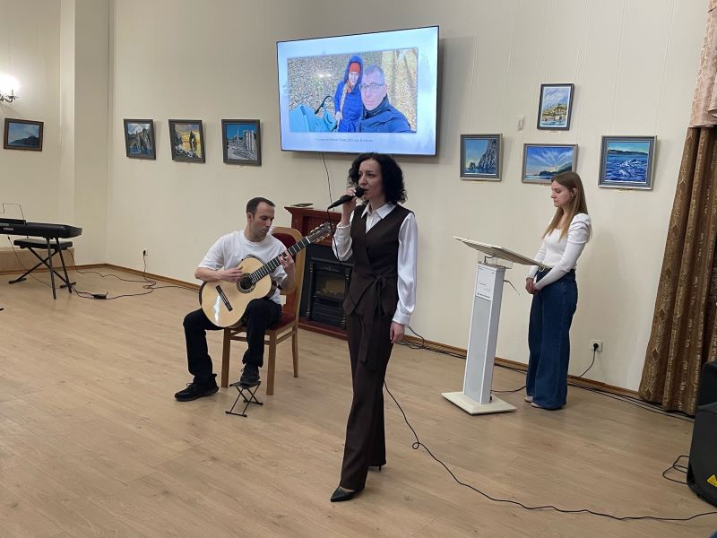 Перед началом презентации юные музыканты исполнили композицию на скрипке. Позже прозвучали творческие номера - от игры на баяне до чтения стихов автора и песен, написанных на слова из произведений Антона Хрулева.