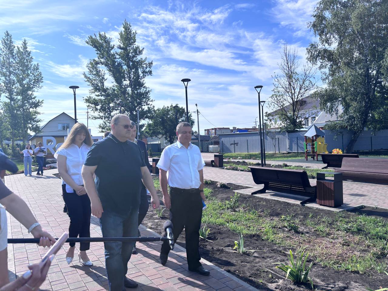 07 июля 2025 г., РИА Пензенской области. Губернатор Пензенской области Олег Мельниченко и глава администрации Сердобского района Александр Бедикин осмотрели обновленный сквер «Семья» и строящуюся пешеходную зону, созданные в рамках проектов по улучшению городской среды и стимулированию рождаемости.