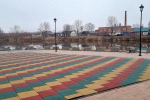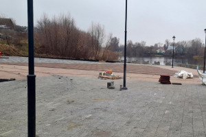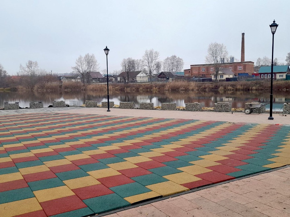 Набережная преобразилась после укладки брусчатки, установки современных фонарей и габионов. Также было подготовлено основание для детской площадки, которую планируется установить в следующем году.