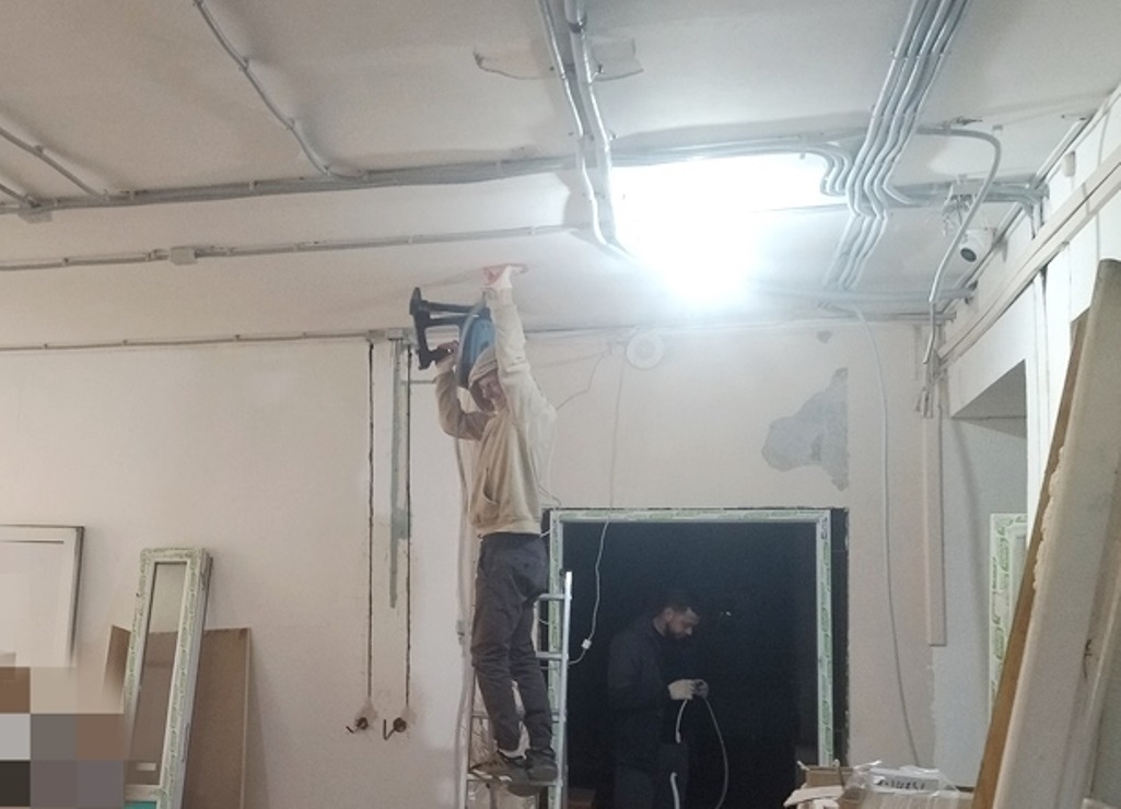 На первом этаже строители приступили к подготовке помещений под штукатурку и начали выравнивать полы и стены. Здесь будут заменены двери, инженерные и электрические коммуникаций, сантехническое оборудование.