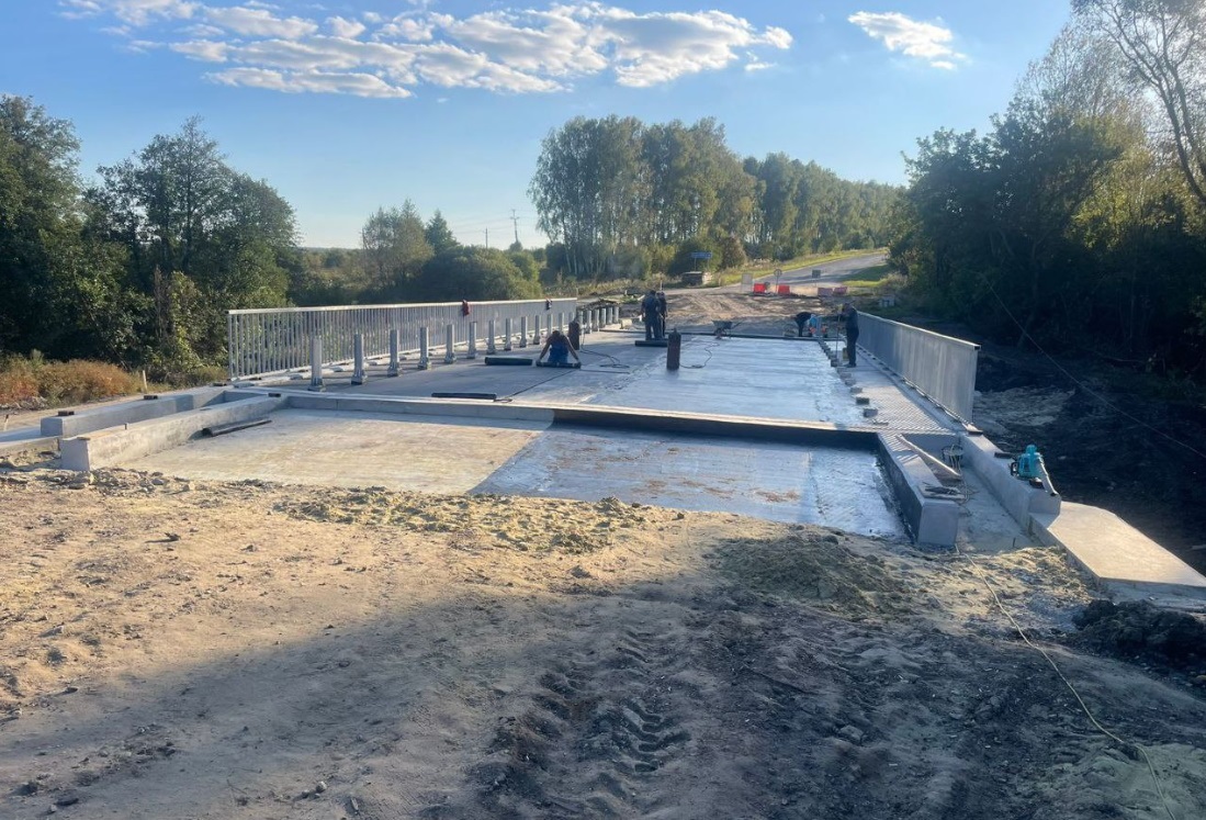 Старый мост, находившийся в аварийном состоянии, разобрали. Рабочие уже закончили монтаж балок, которые соединили и связали с подходами. Следующий этап - укладка гидроизоляции.