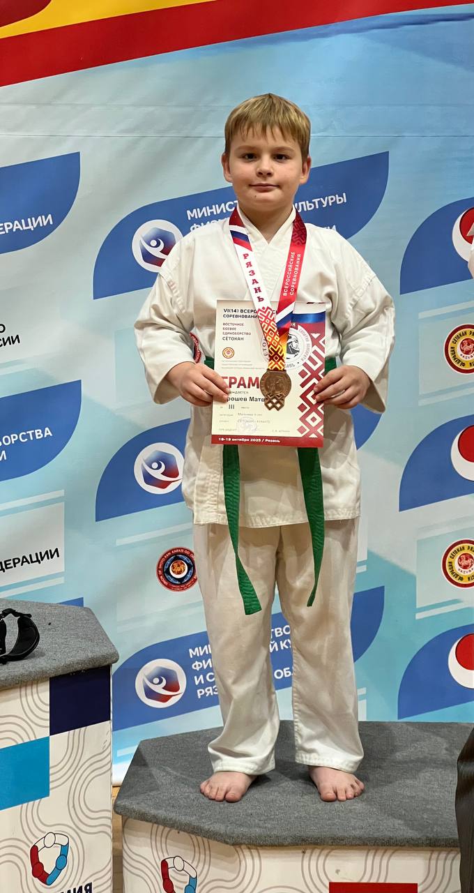 Матвей Грошев занял третье место в открытых соревнованиях Рязанской области в этой же дисциплине в возрастной категории 9 лет.