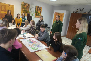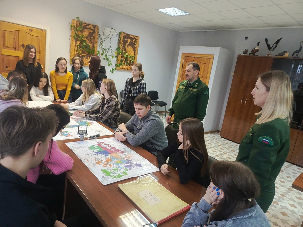 Директор Татьяна Бычкова и лесничий Ильяс Абдразаков рассказали студентам об управлении лесными ресурсами, современных способах охраны и восстановления экосистем.