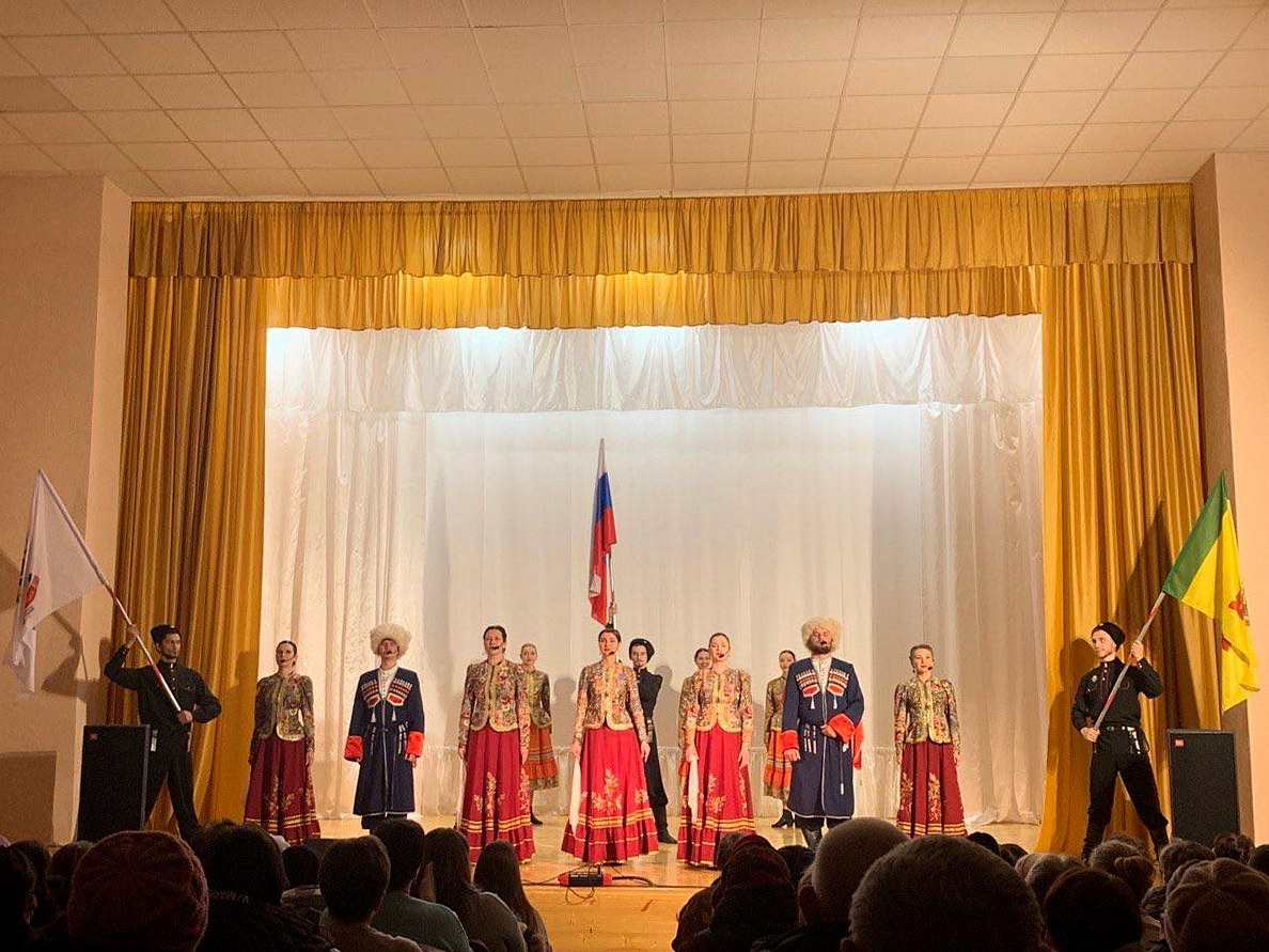 Концерт «Казачьей заставы» открыл декабрьские гастроли проекта «Творческие встречи». Артисты порадовали зрителей яркой программой, в которую вошли казачьи песни, патриотические композиции и тематические хореографические номера.