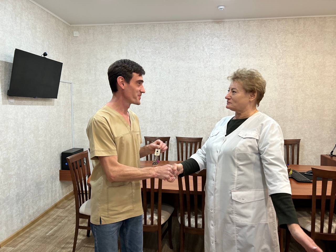 Главный врач больницы Галина Дерябина вручила ключи от служебных квартир участковому врачу-педиатру Султание Дасаевой и врачу-оториноларингологу Рушану Хамзину.