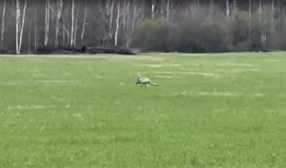 23 апреля 2026 г., РИА Пензенской области. Сотрудник Никольского лесхоза ⁣во время обхода охотничьего участка заметил серого журавля, кормившегося в поле.